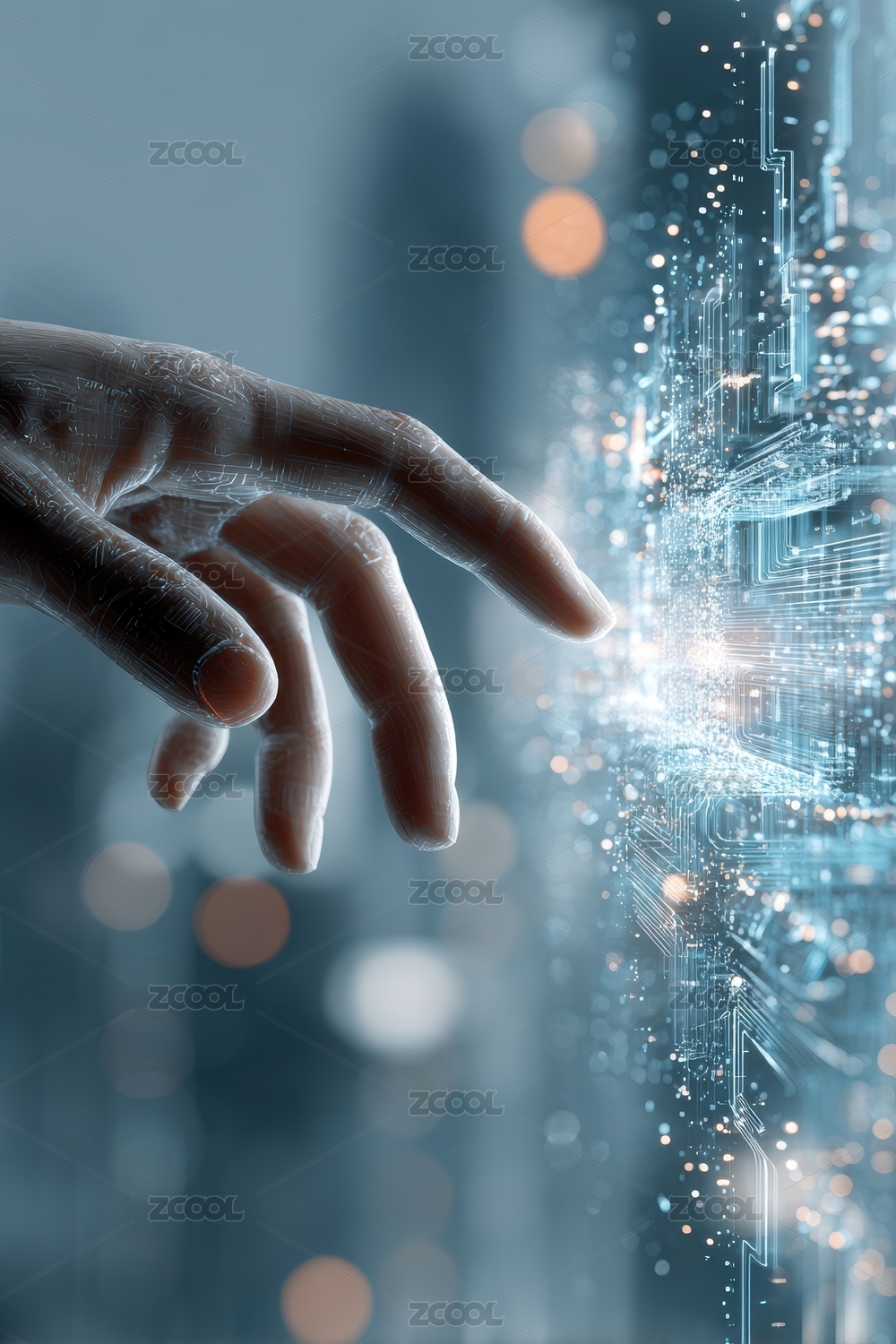 手指触碰数字颗粒 虚幻科技氛围