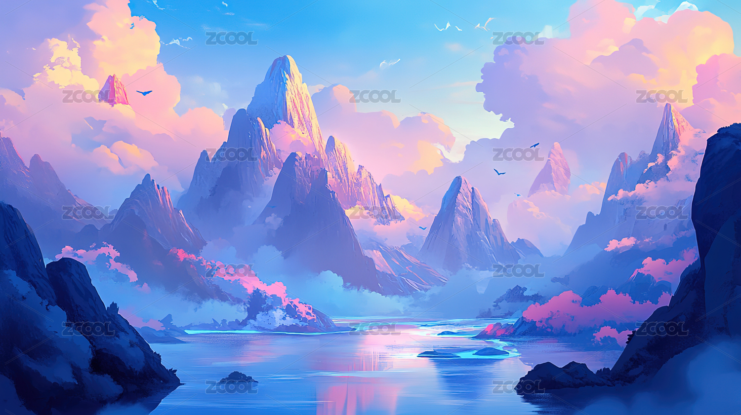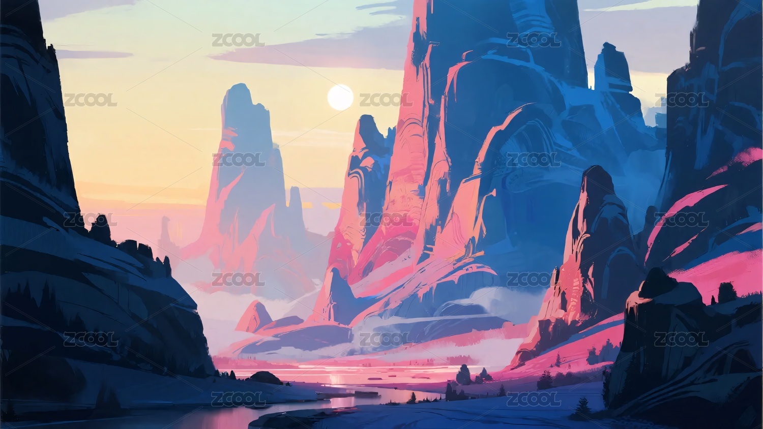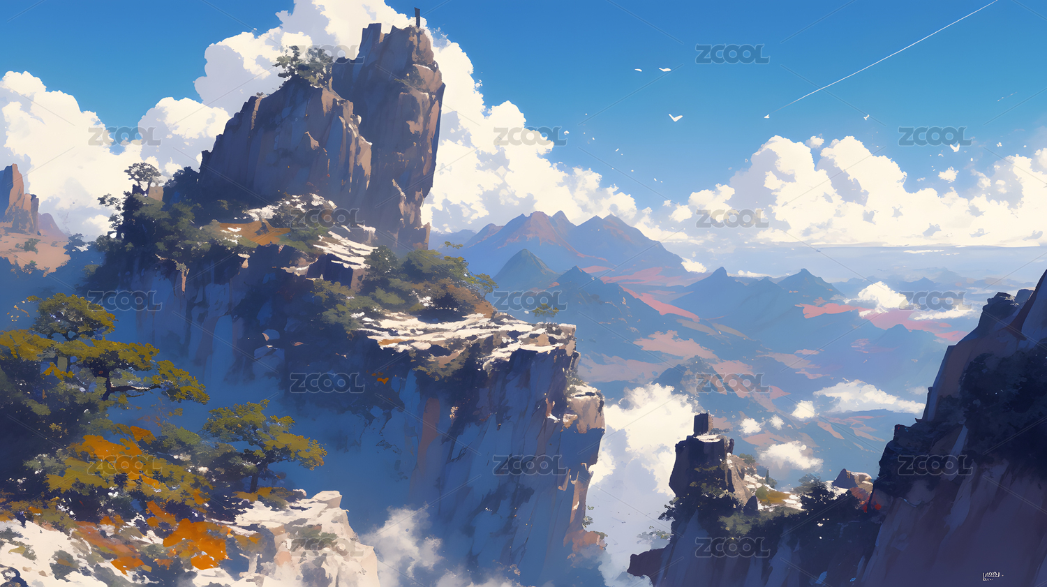 传统风景山水画,小说游戏海报素材插画