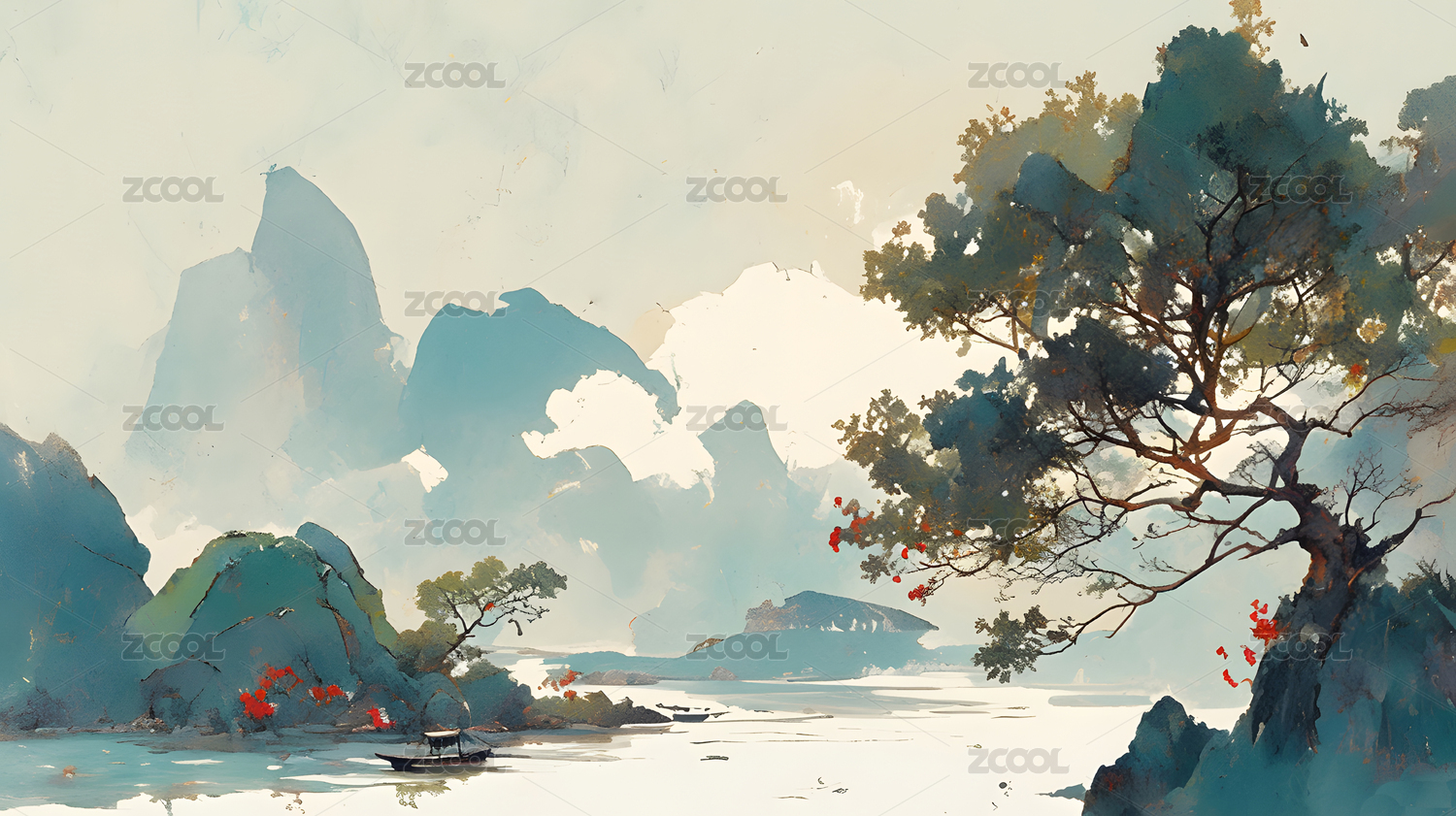 中国风山水风景水墨画风格