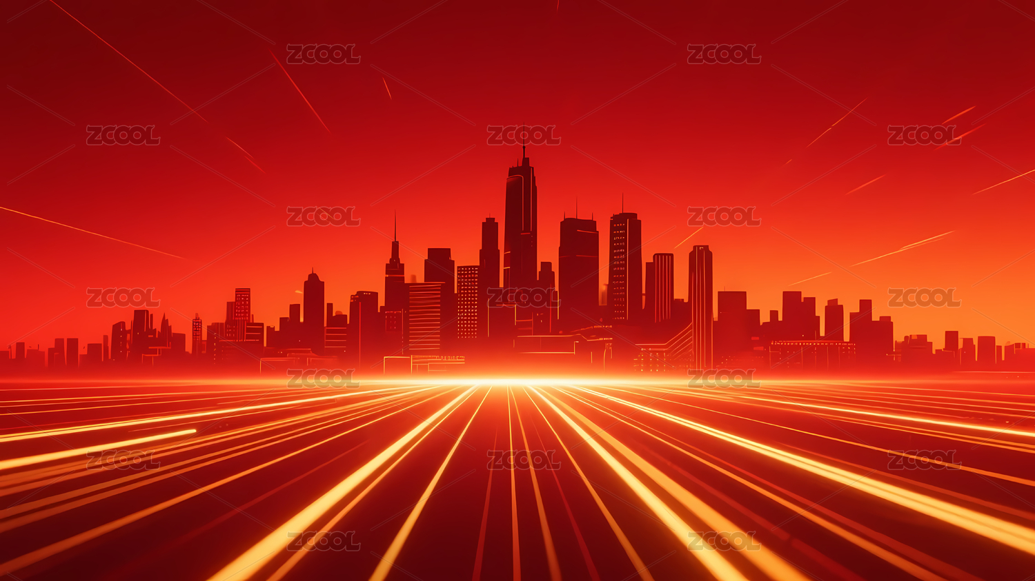 红色城市天际线与光带