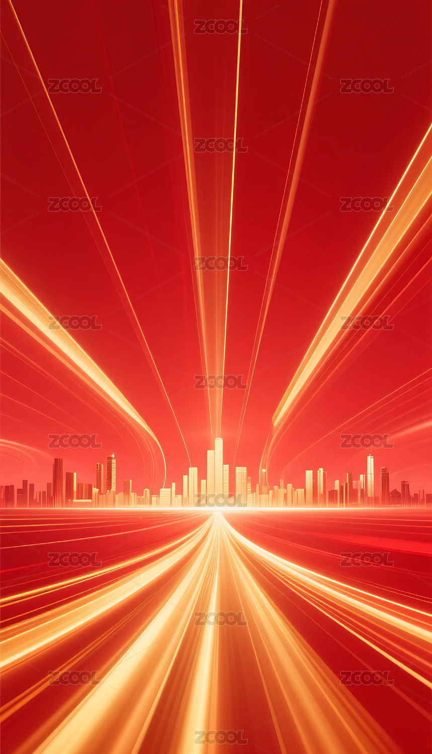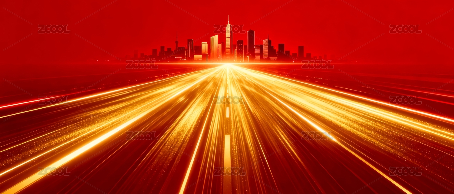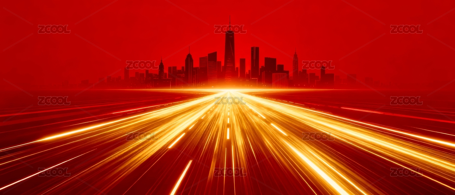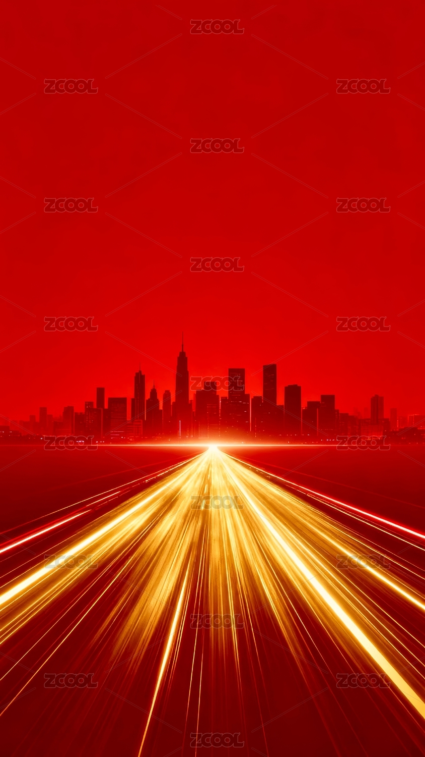 红色城市天际线交通光带