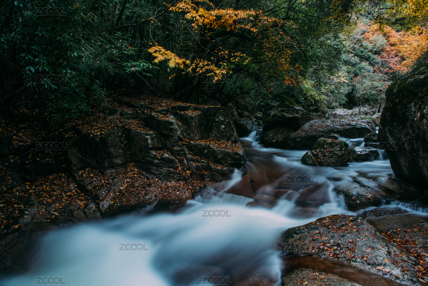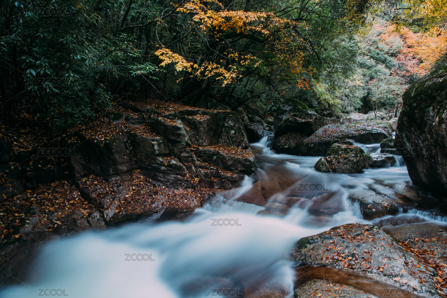 中国四川巴中南江县光雾山秋季的红叶溪流