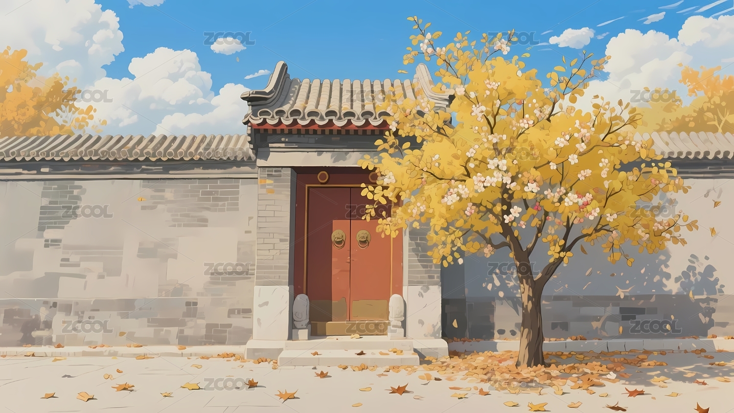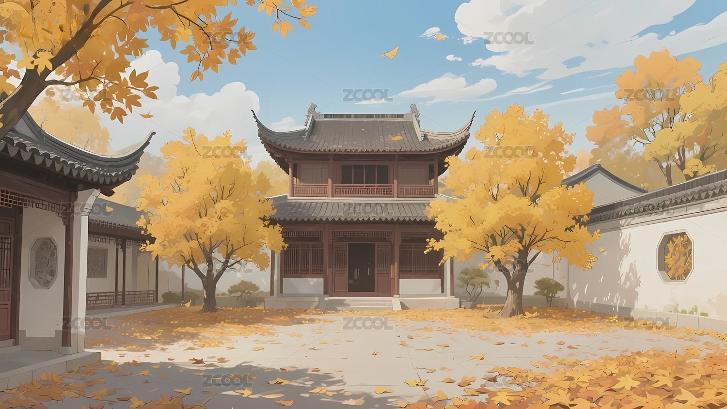 自然,风景,宁静,秋季,树木,阳光,建筑,和谐,色彩,黄叶