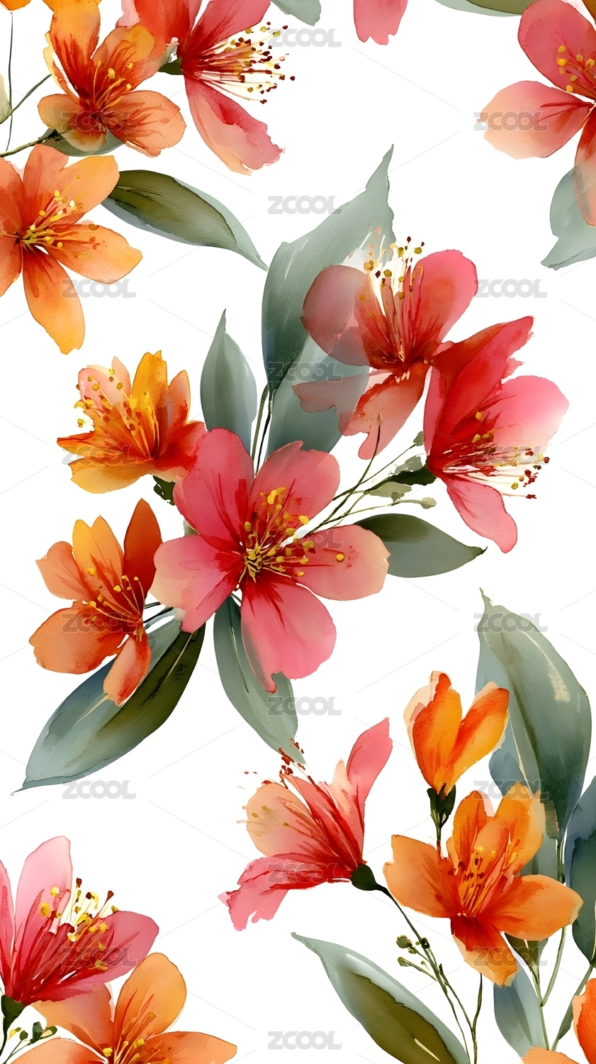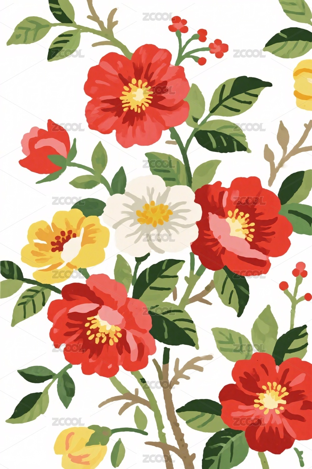 花卉,花朵,叶子,插画,背景,植物,红色,绿叶,水彩,装饰