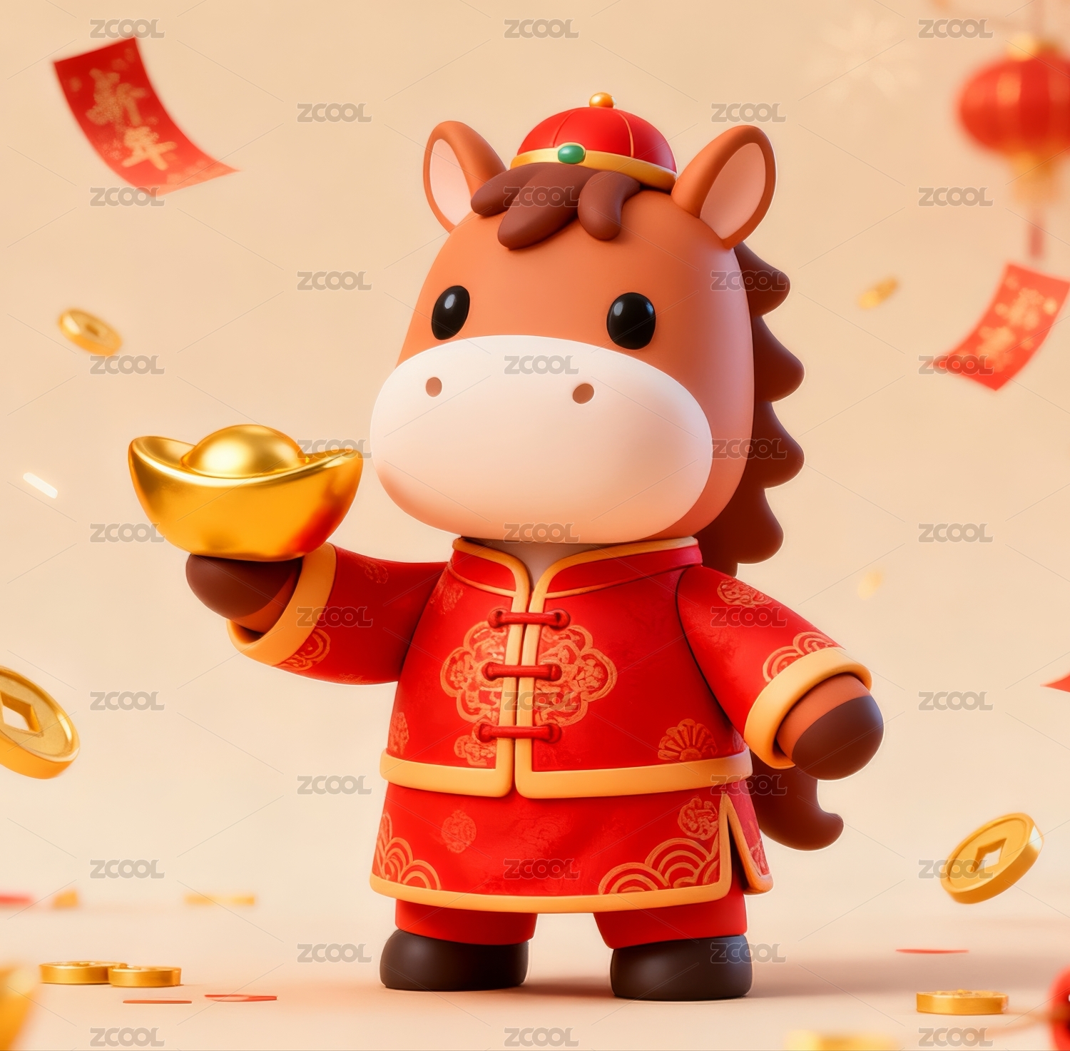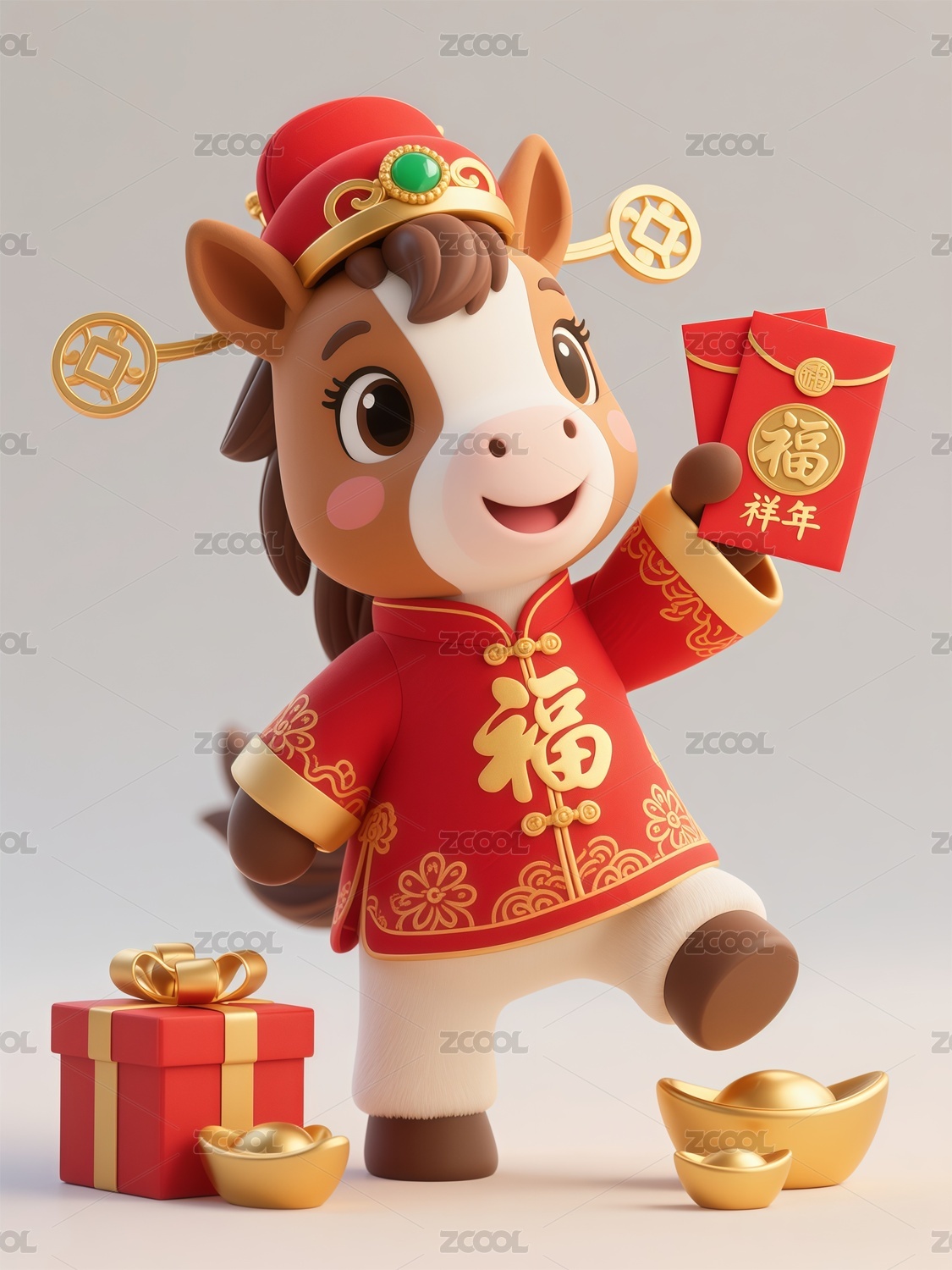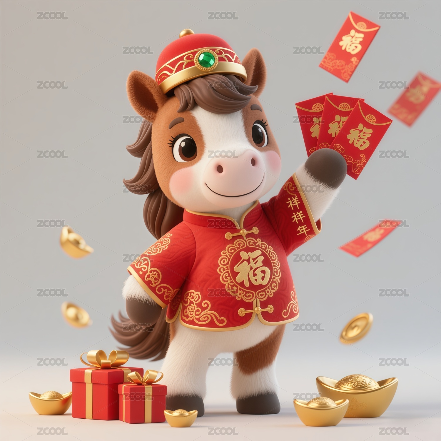 卡通,3D,立体,春节,新春,新年,生肖马,送礼,红包,利是