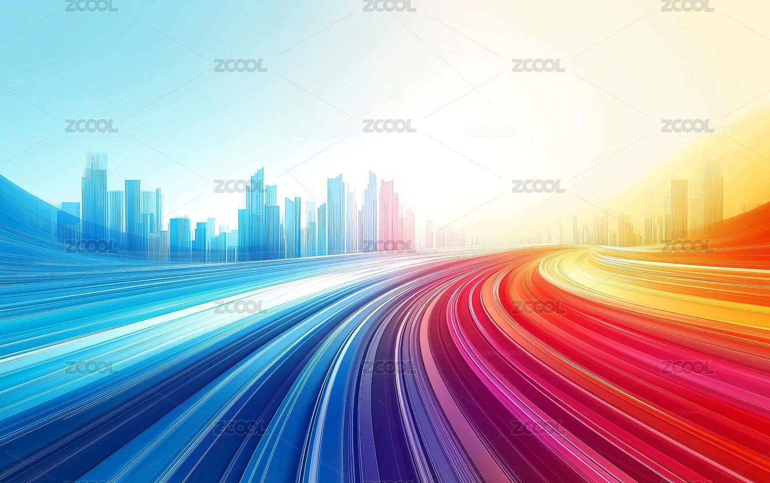 蓝金色商务科技流体光效城市建筑主视觉背景