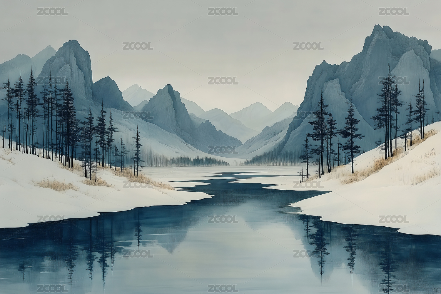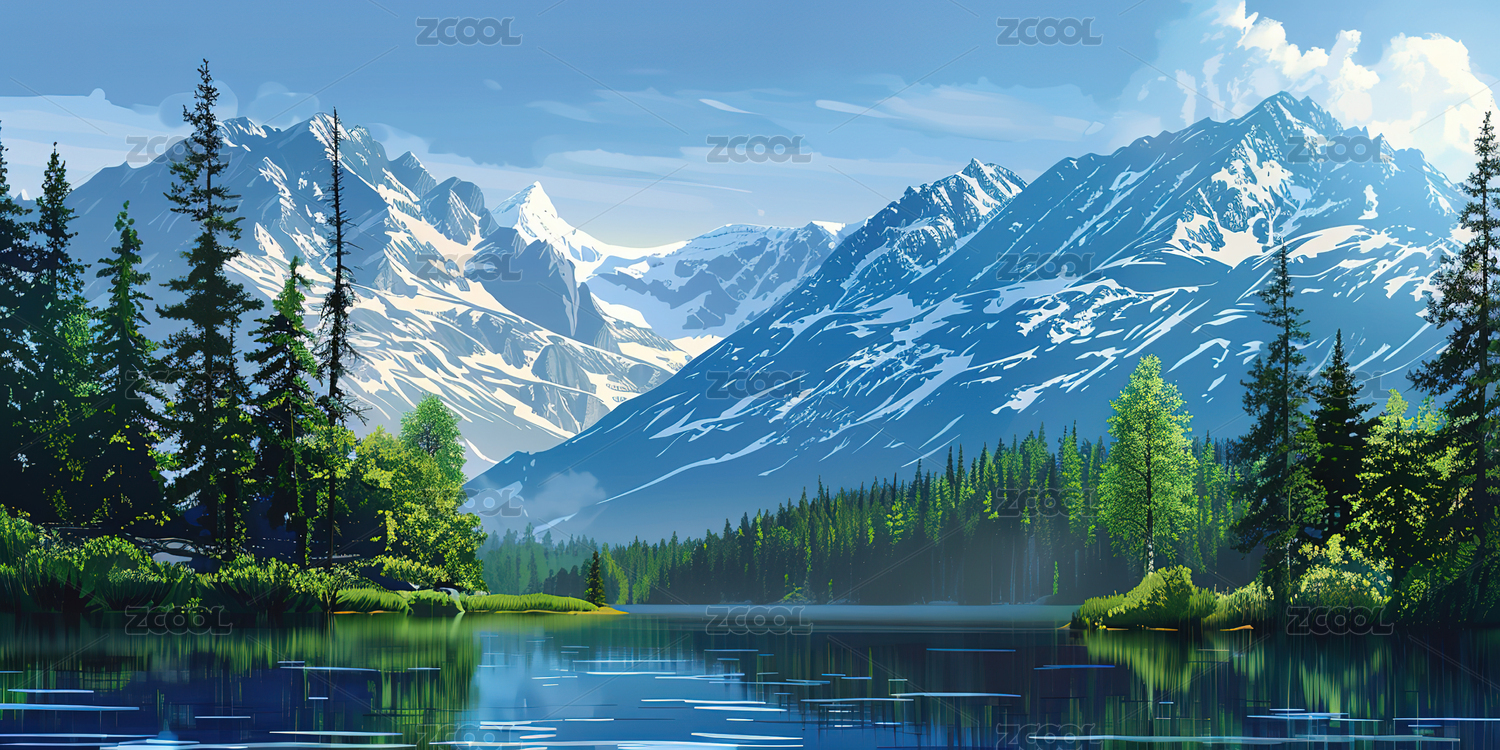 雪山,湖泊,森林,山水,倒影,蓝天,白云,冰雪,山脉,水面