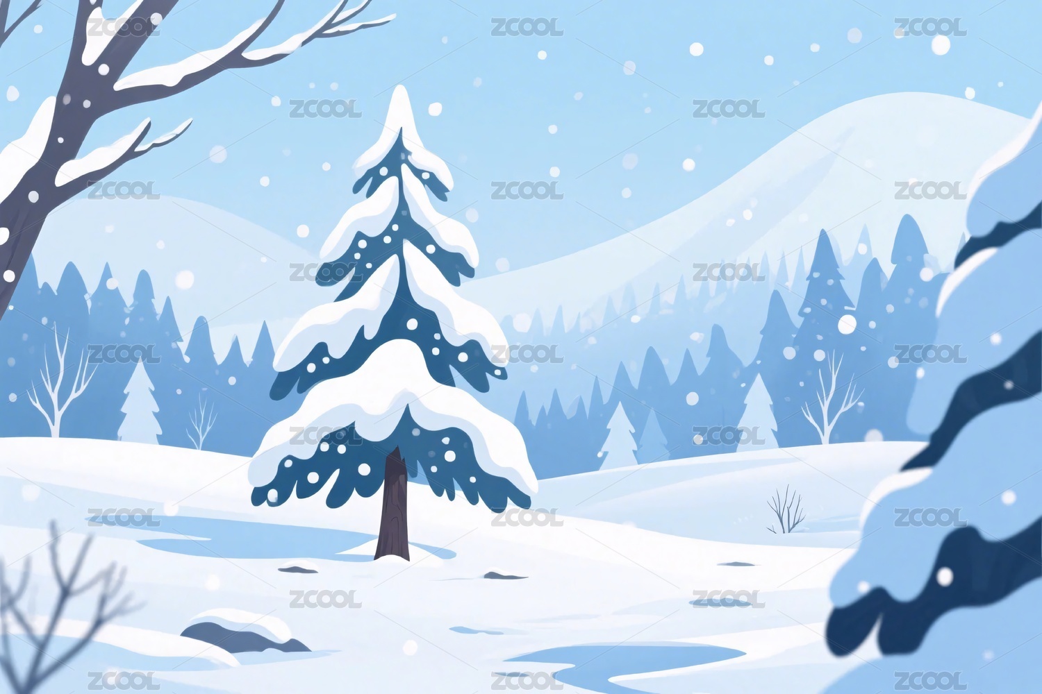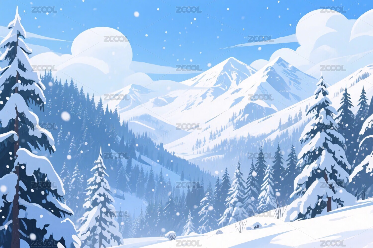 雪景,森林,树木,松树,雪地,阳光,积雪,冬季,插画,自然