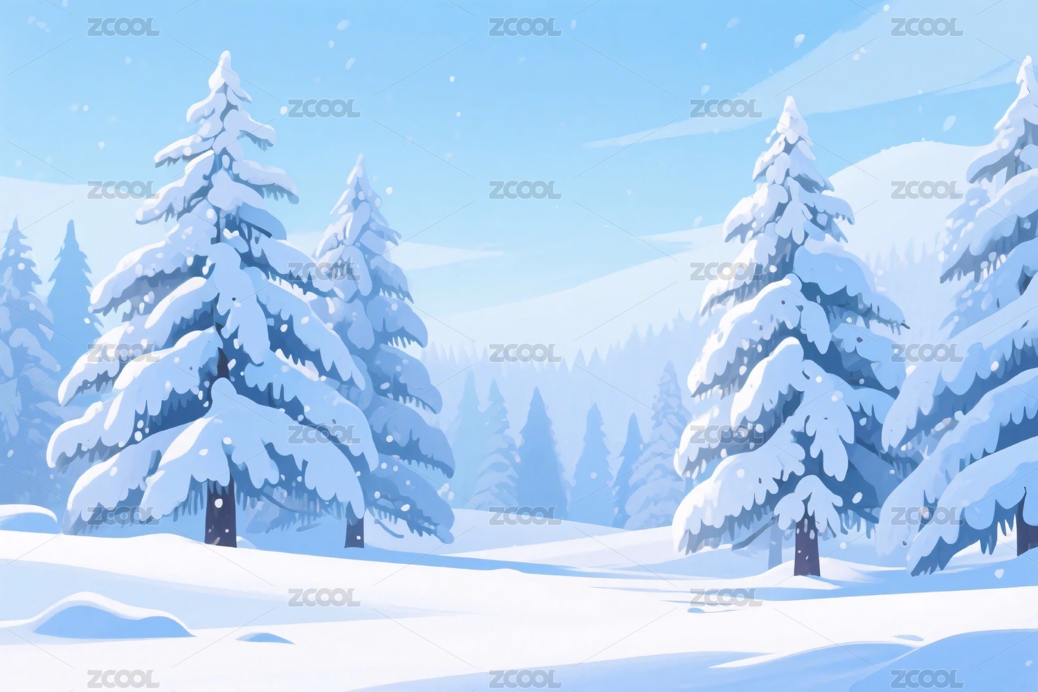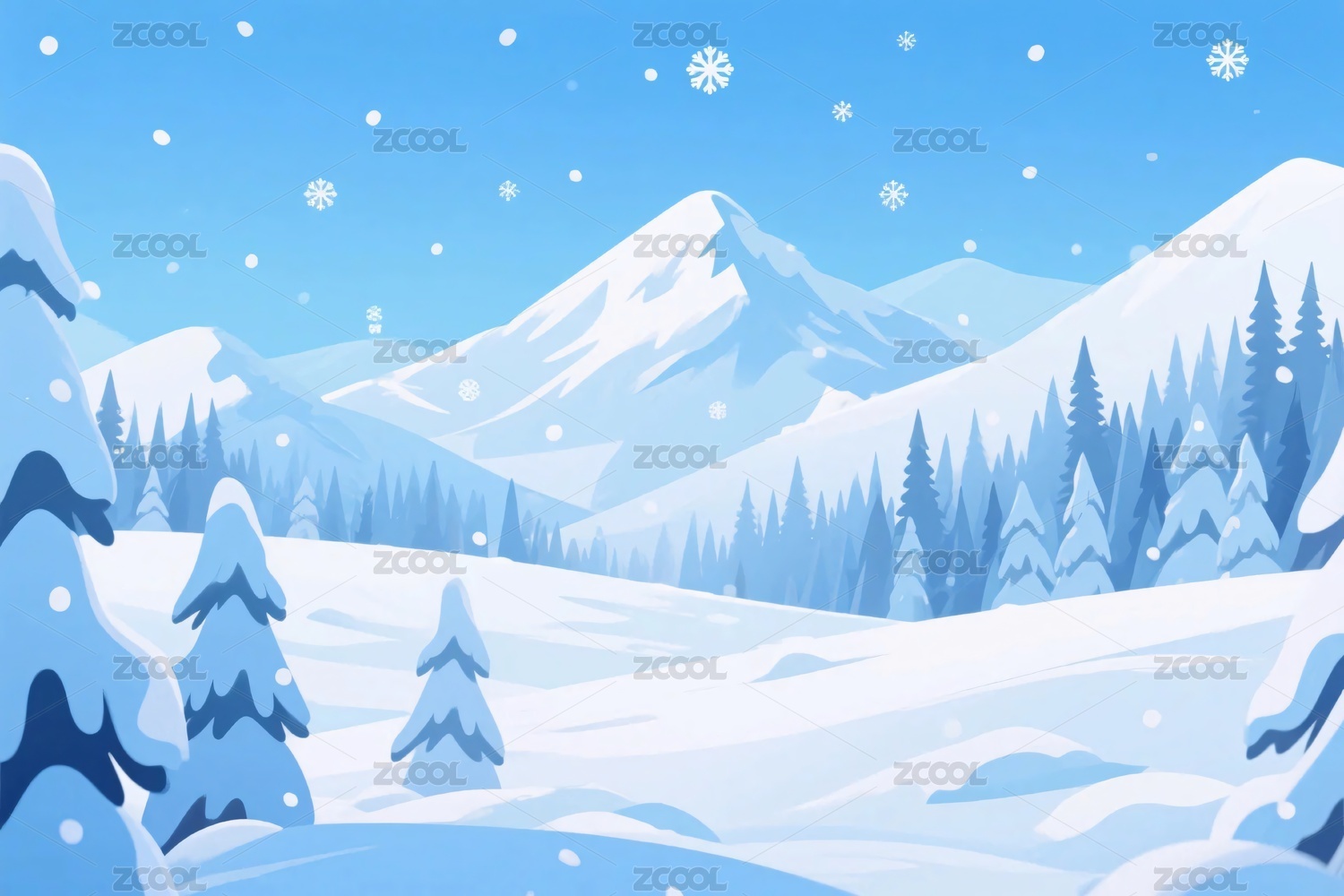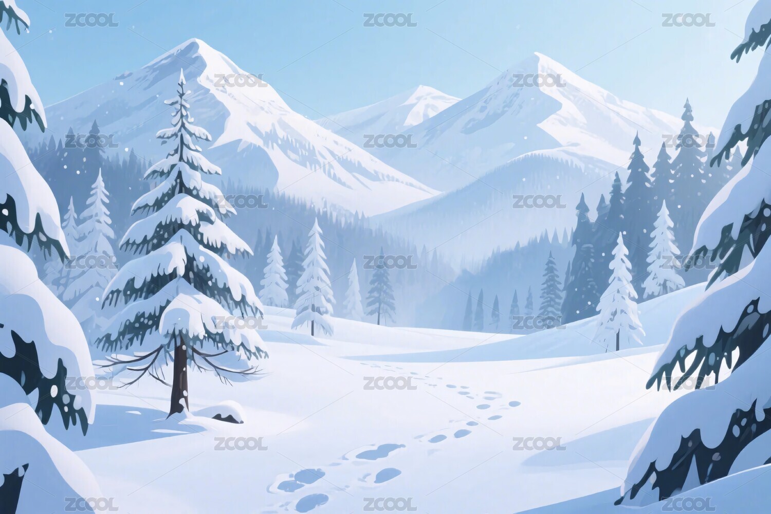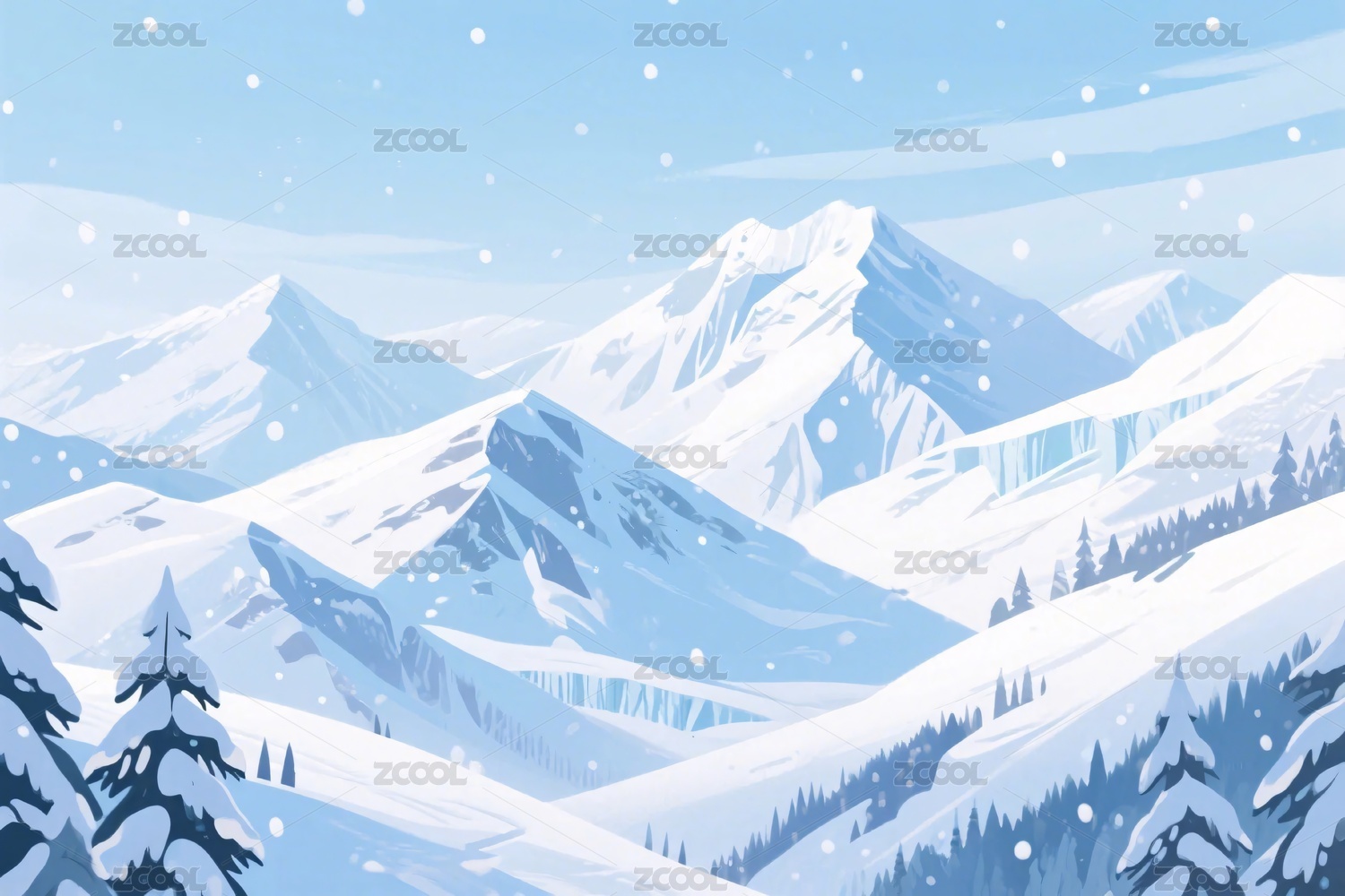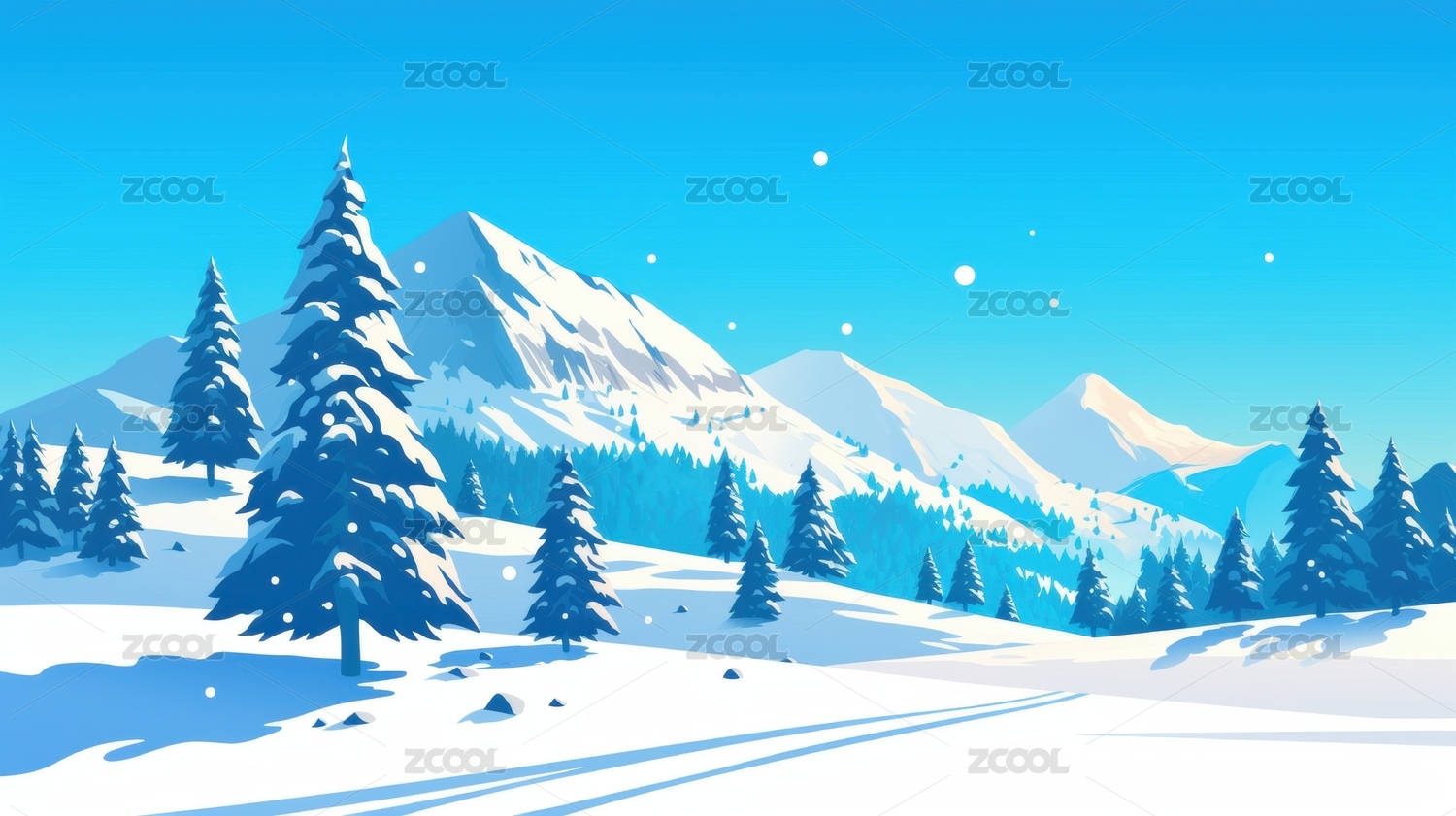 雪山,雪地,松树,太阳,冬季,雪景,插画,卡通,风景,冰雪
