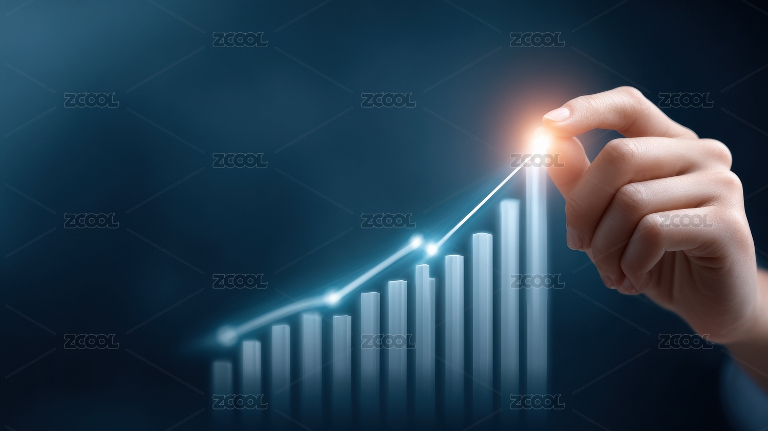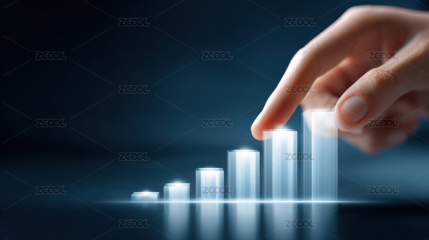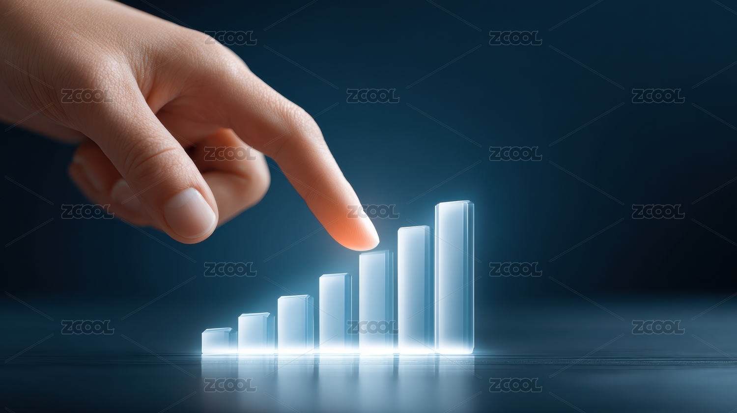 手指触碰上升的柱状统计图