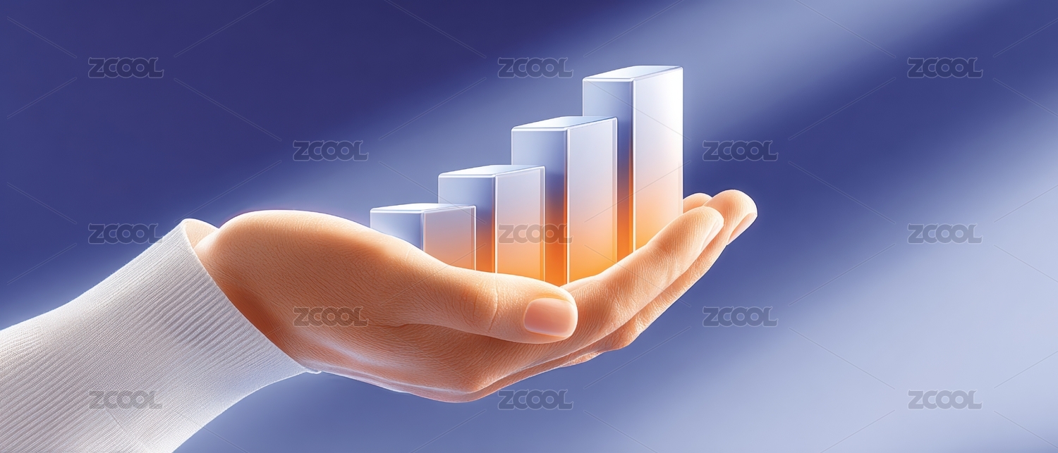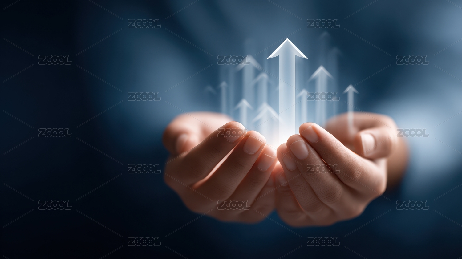 双手托起的上升箭头象征着增长与希望