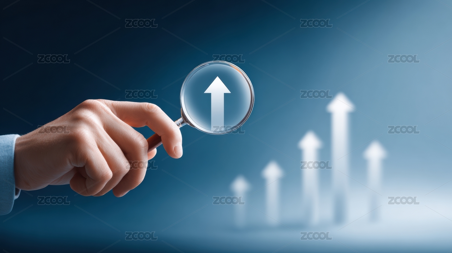 手指指向上升箭头象征增长与成功