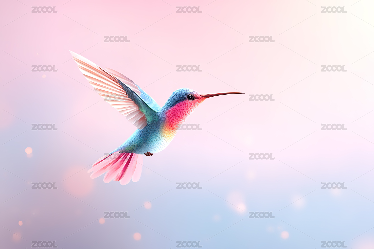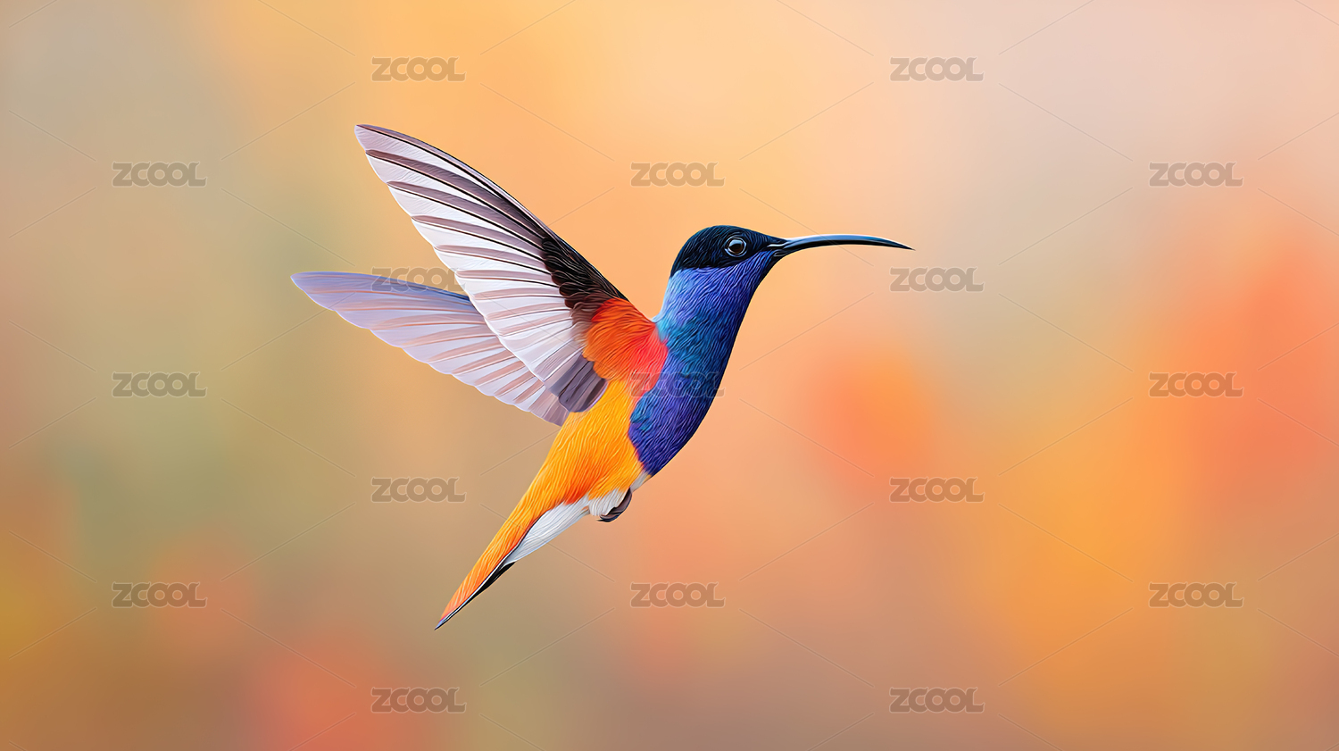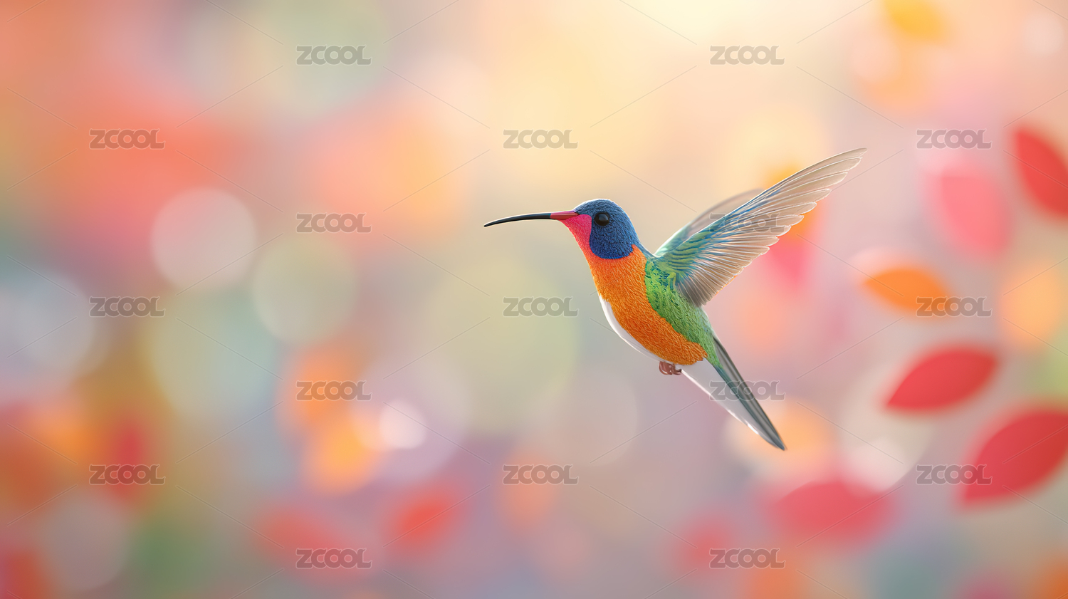 一只色彩斑斓的小蜂鸟在花丛中翩翩起舞,显