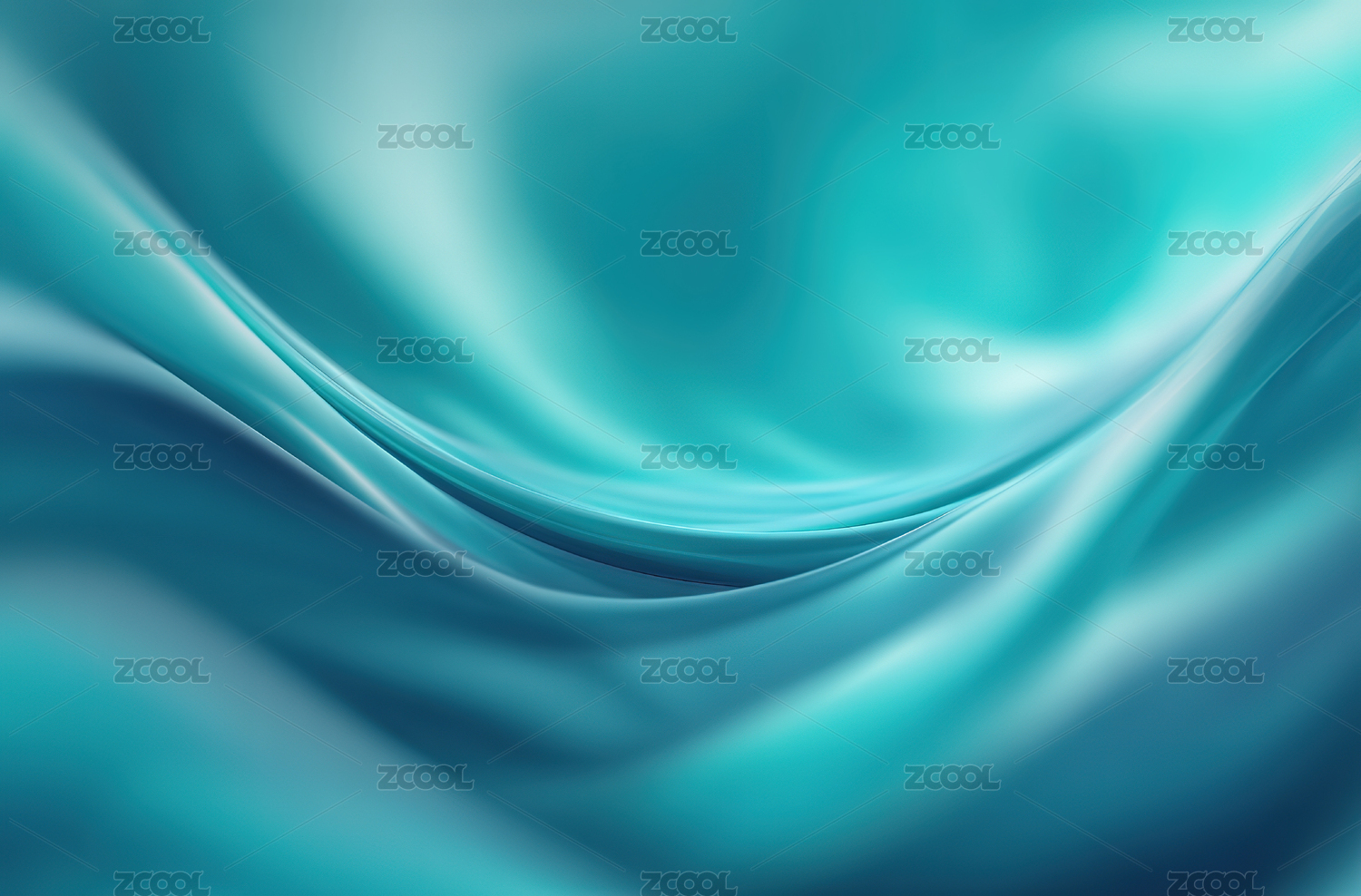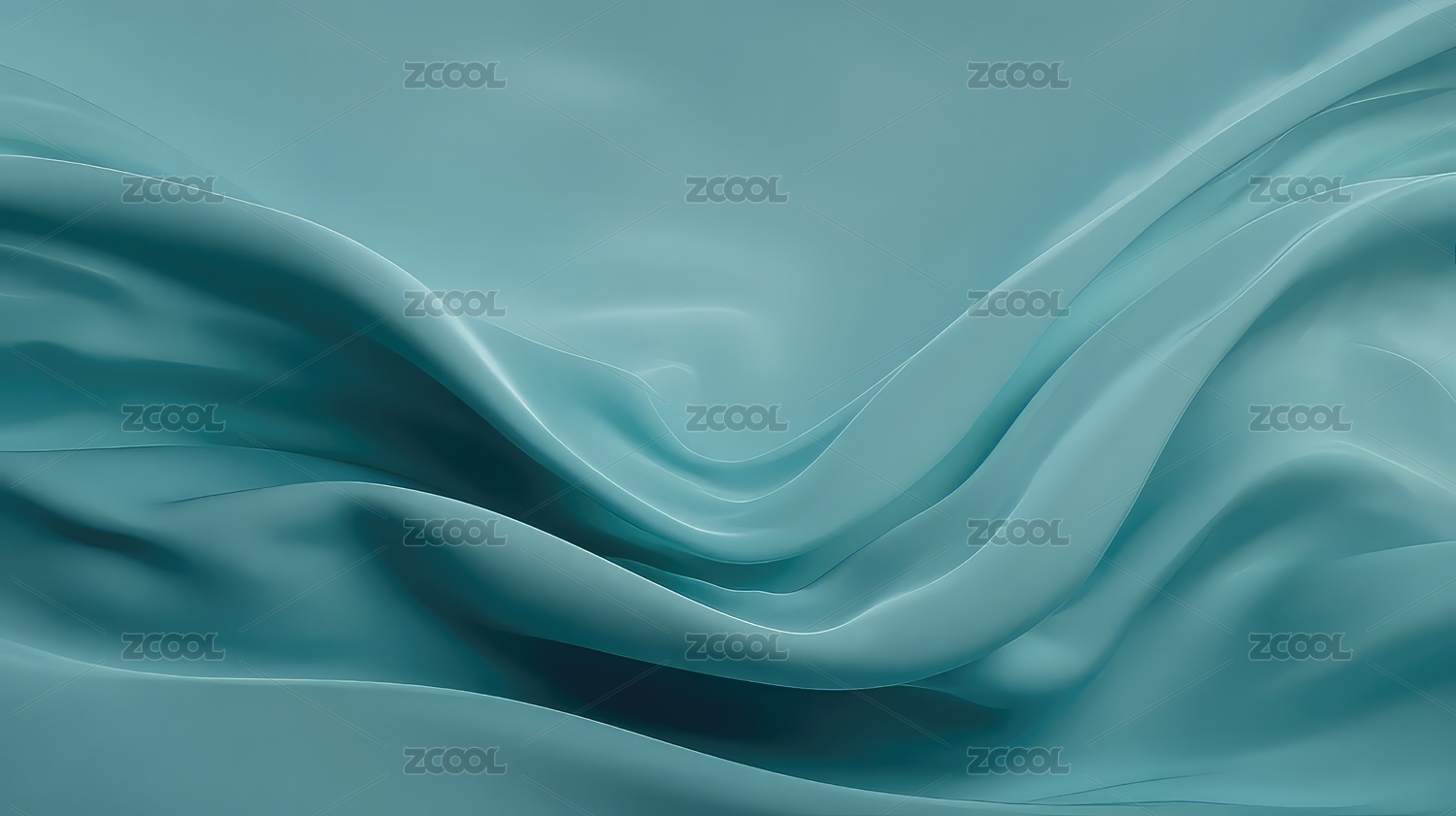 蓝绿色丝绸的柔美波浪质感画面