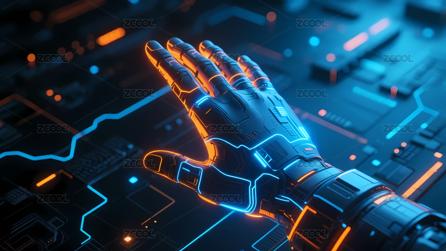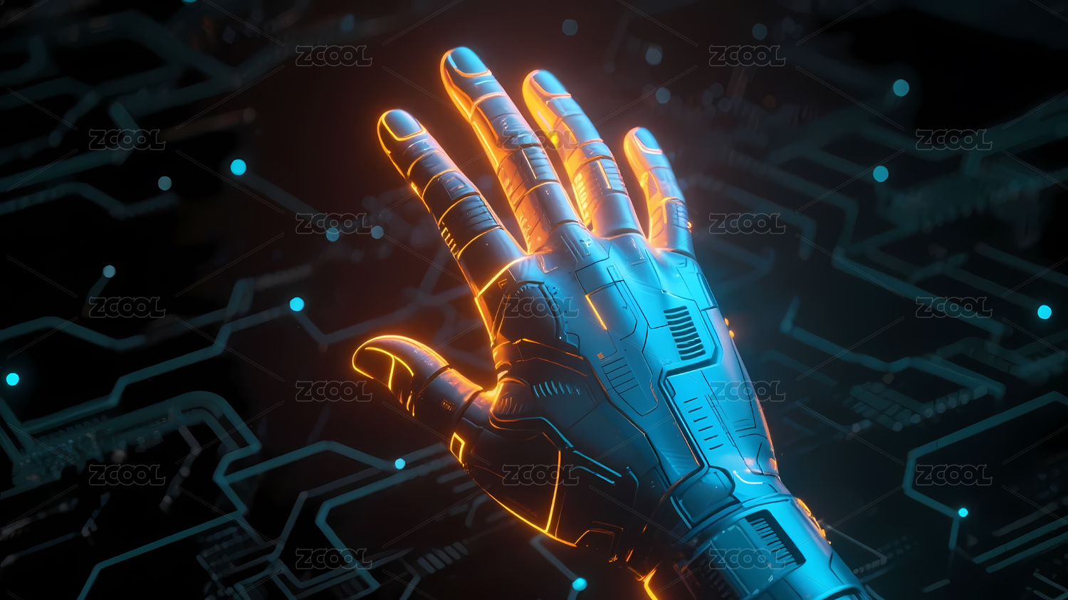 科技感机械手与电路背景
