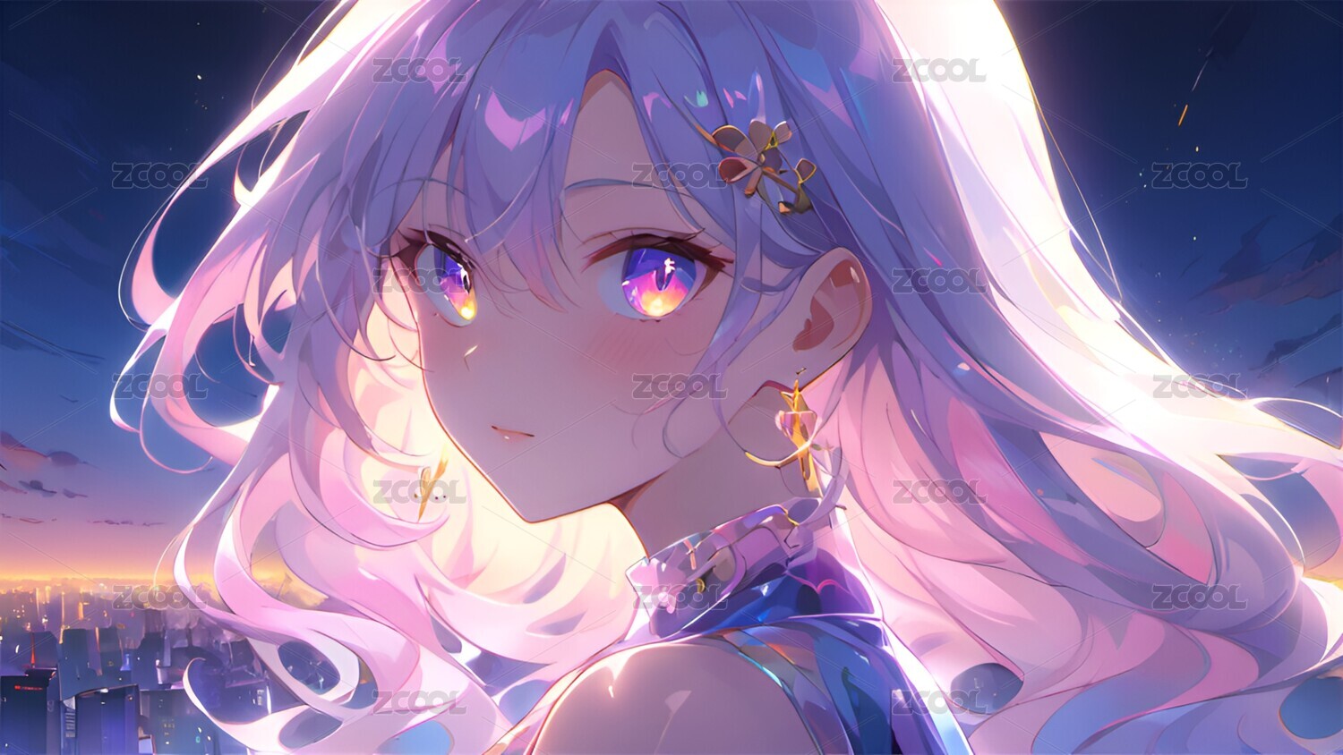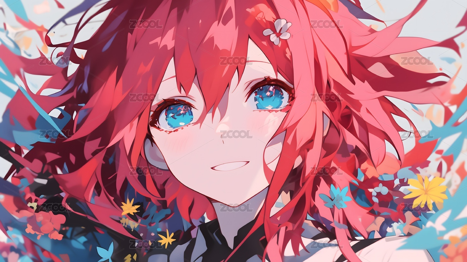 粉色头发蓝眼少女破墙而出二次元动漫插画