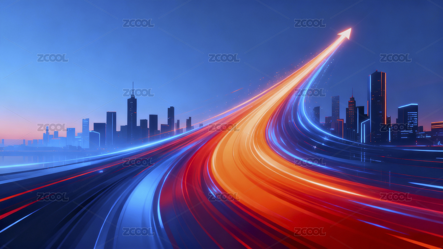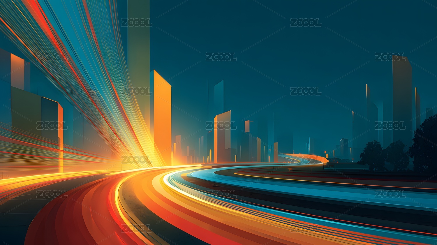 夜晚科技悬浮的现代城市高架路3D立体插画
