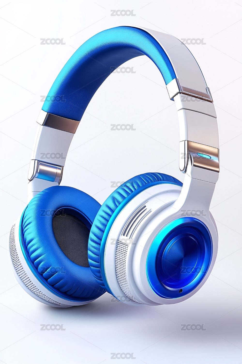 炫酷蓝白时尚耳机特写