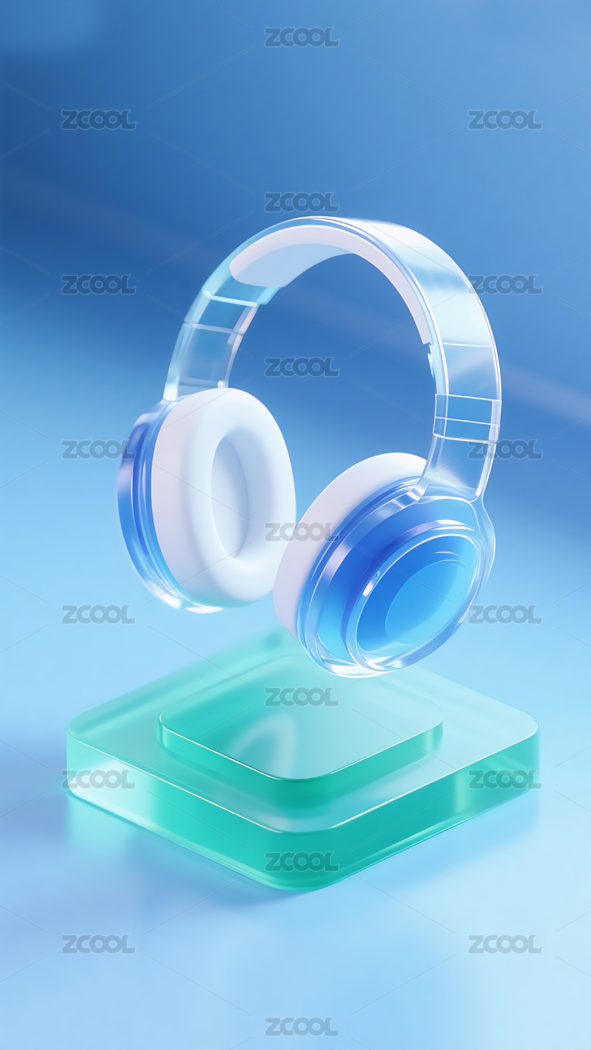 三维玻璃质感头戴式耳机图标海报壁纸