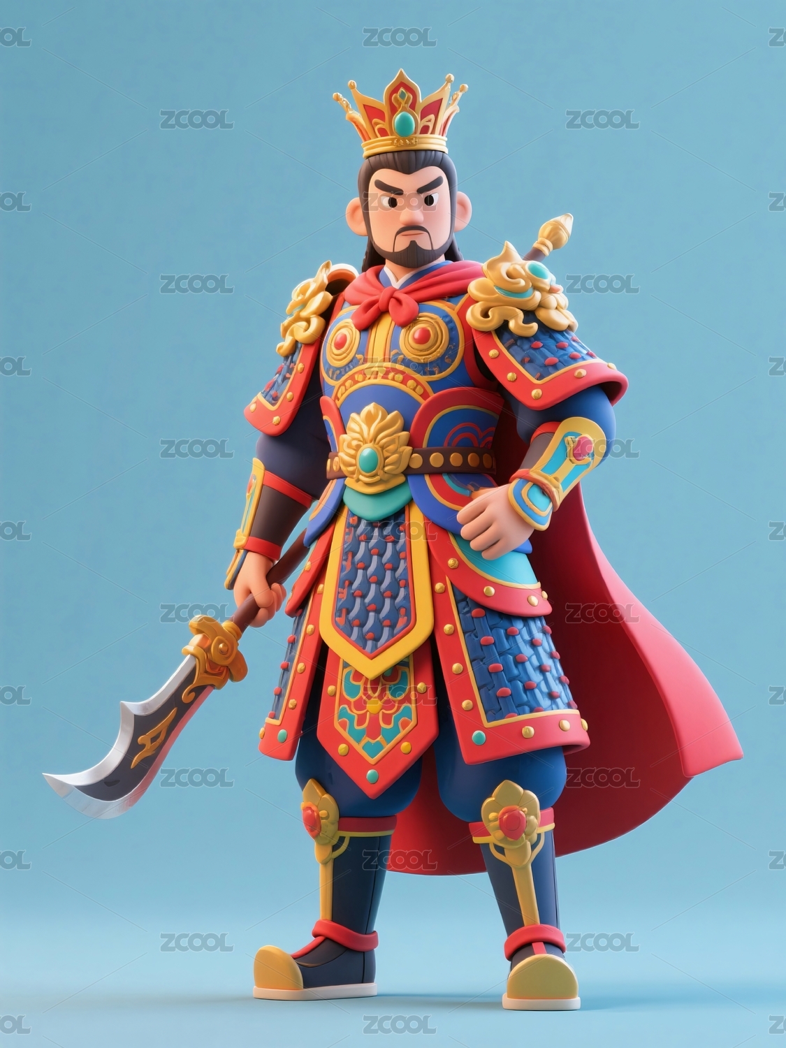 卡通,3D,美女,国潮,汉服,盔甲,将军,英姿飒爽,元素,人物