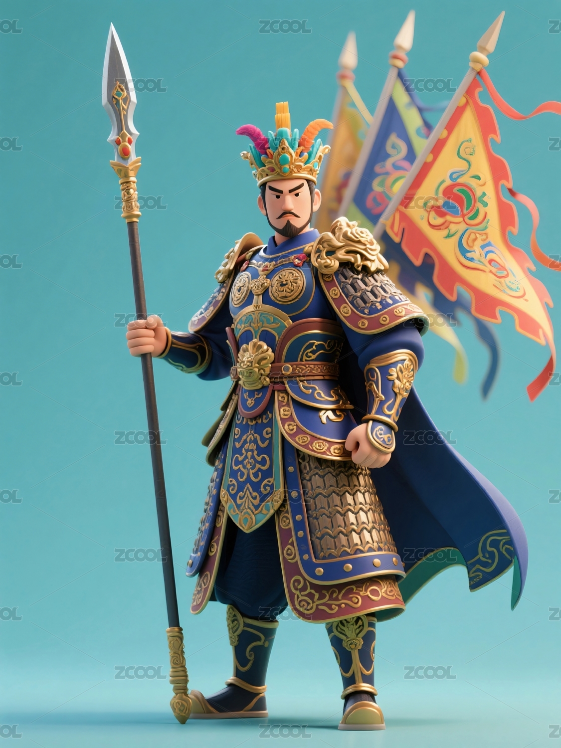 古代武将身着铠甲手持长枪