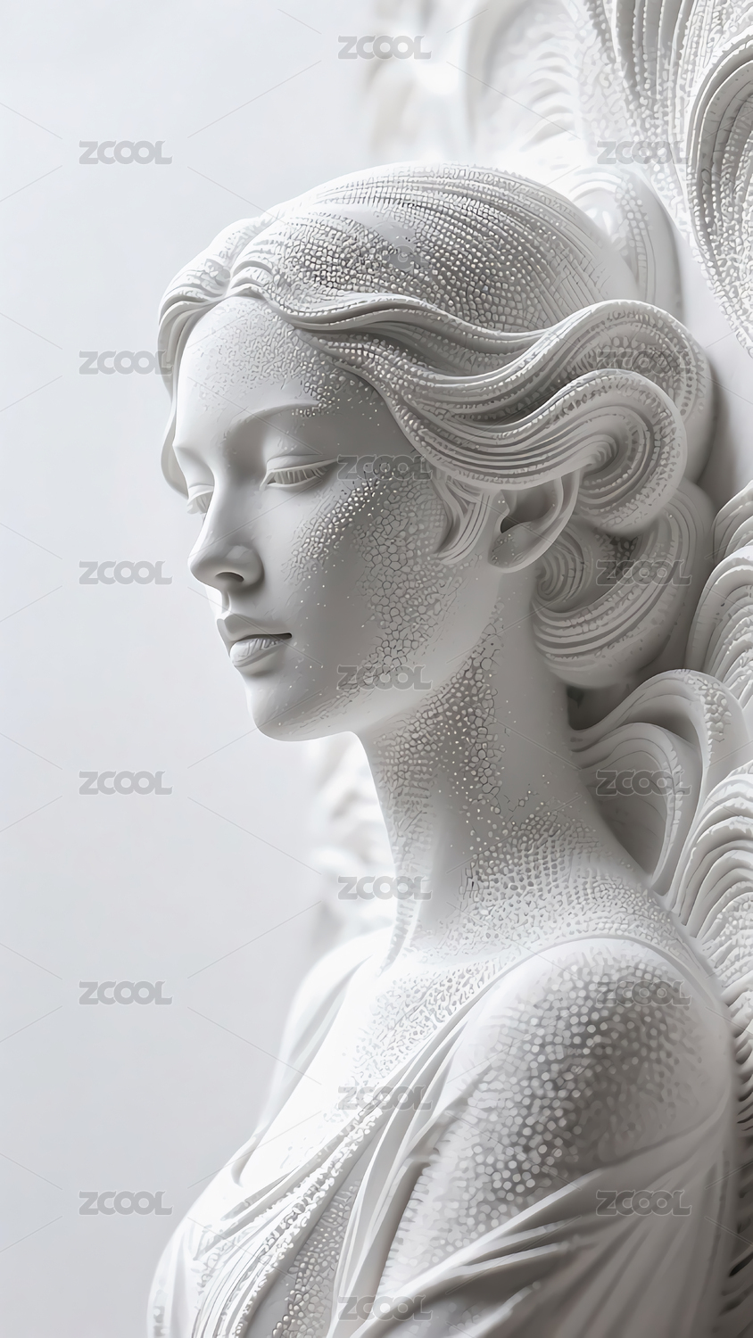 石膏,人像,美女,壁纸,3D,白色,表情,闭眼,背景