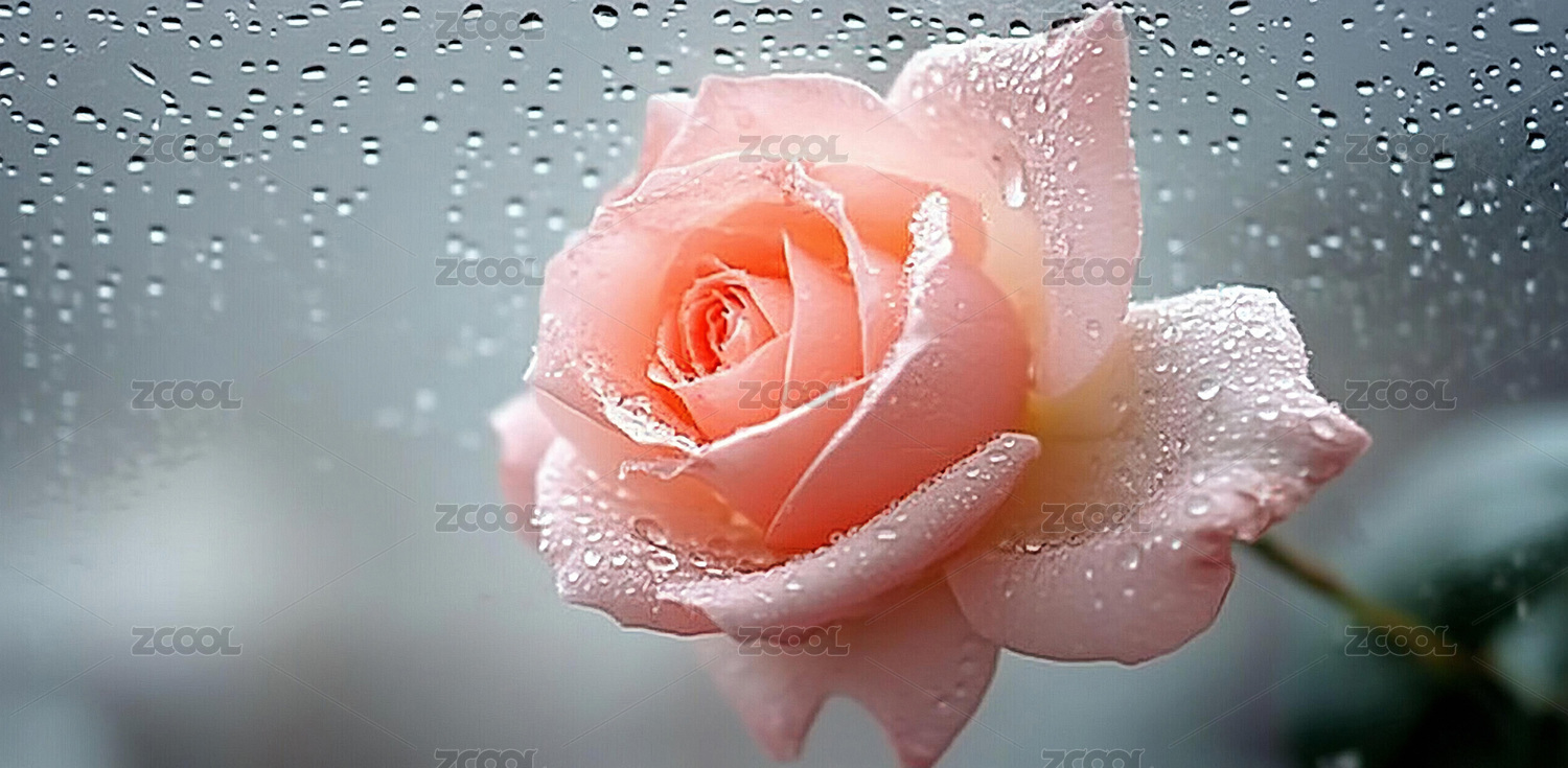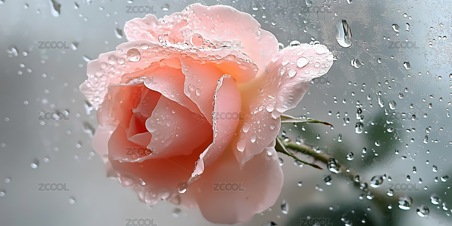 雨滴轻拂的淡粉色玫瑰