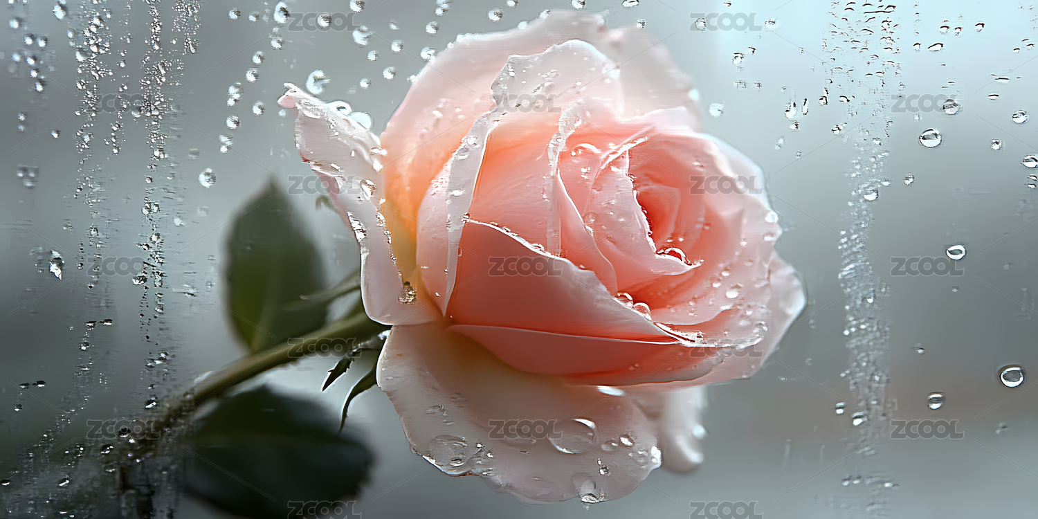雨中绽放的淡粉色玫瑰