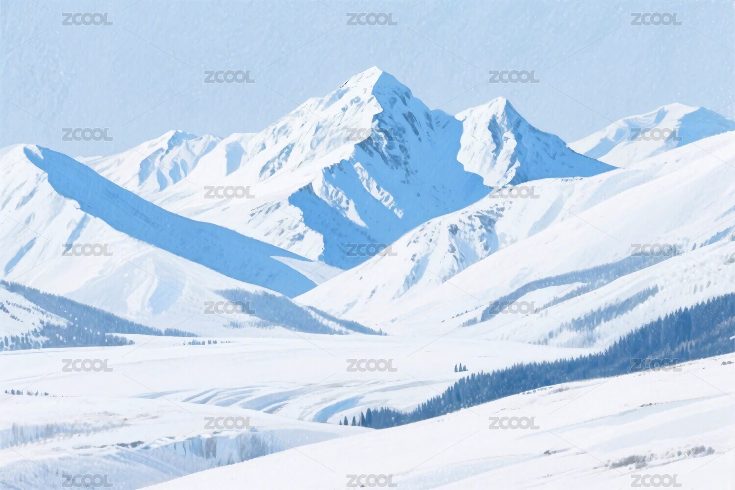 雪山雪景风景插画