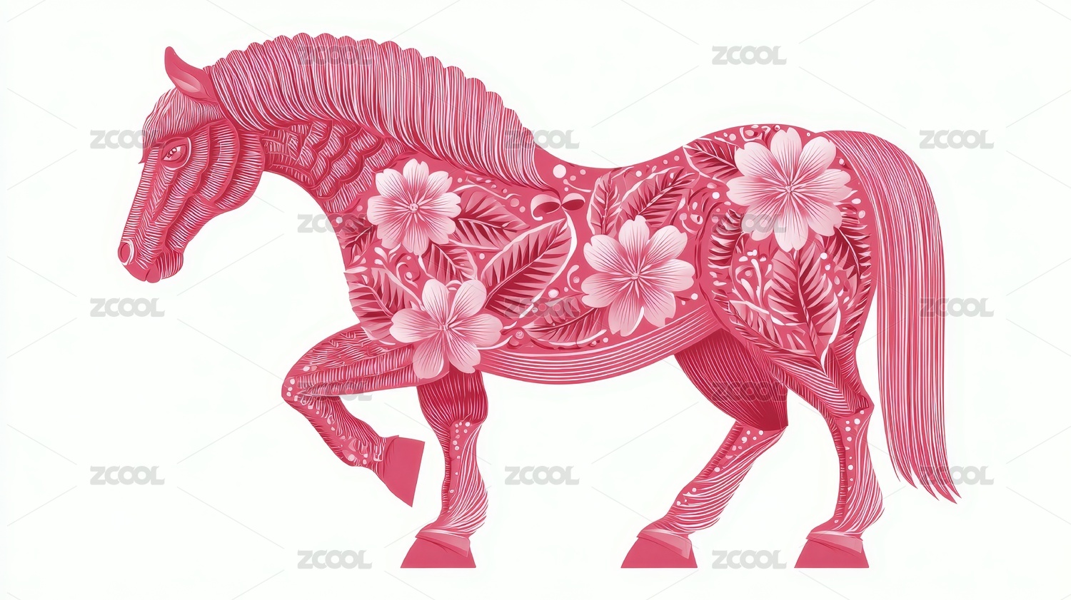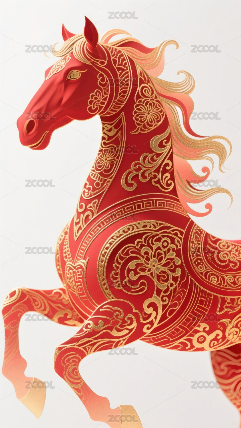 红色剪纸风格的骏马装饰