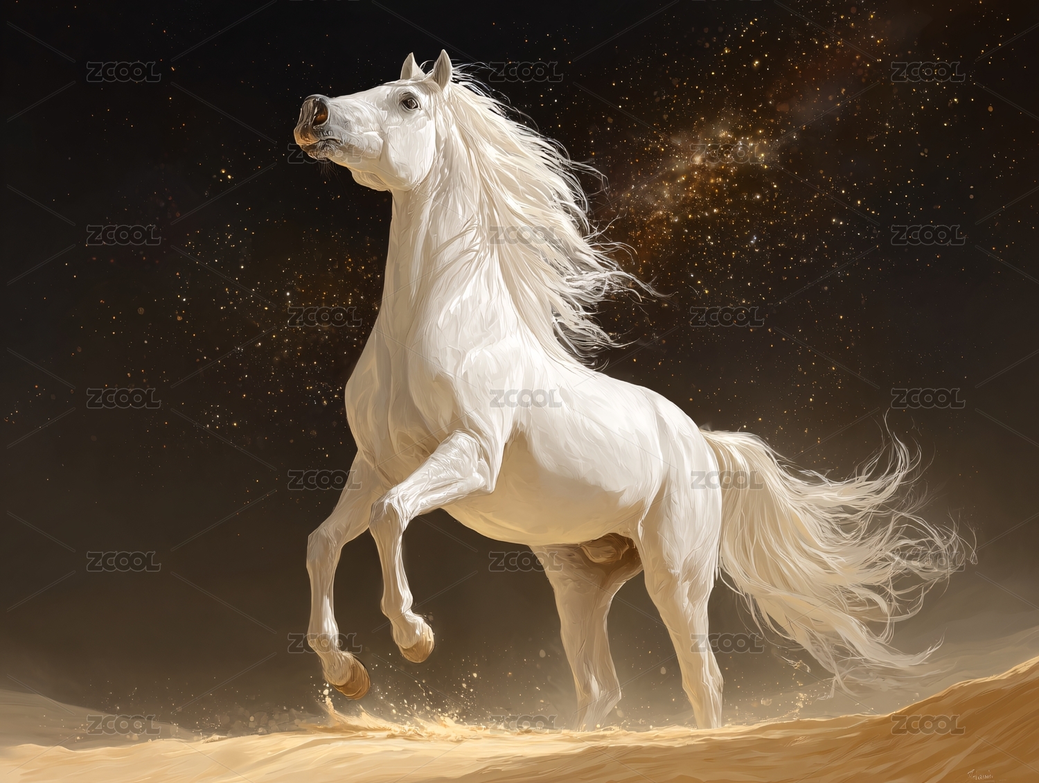飞驰,繁星,夜空,彩云,紫色,白马,星光,奇幻,星空,金饰