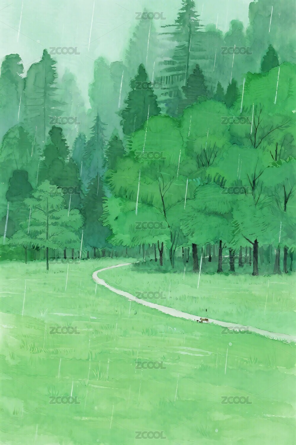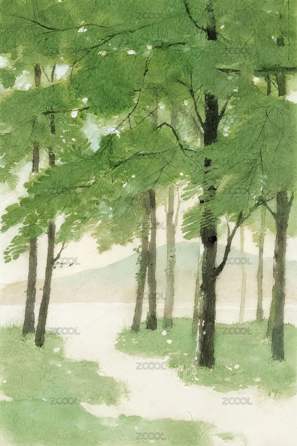 清新水墨风森林插画