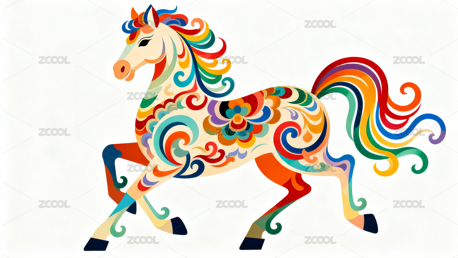 彩色装饰艺术马奔跑姿态马年