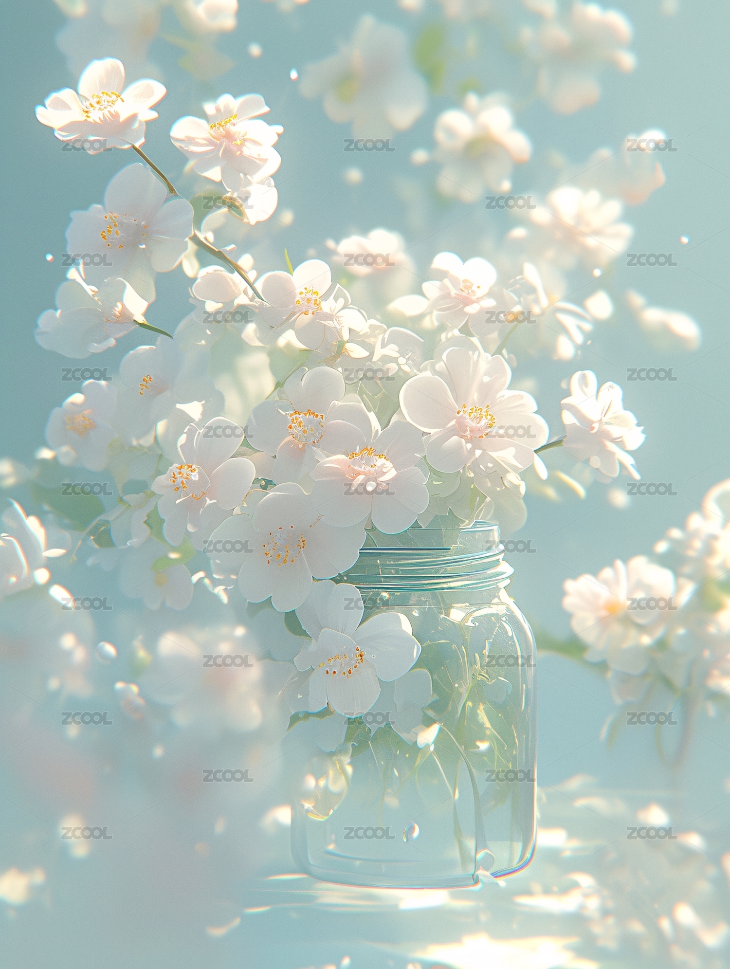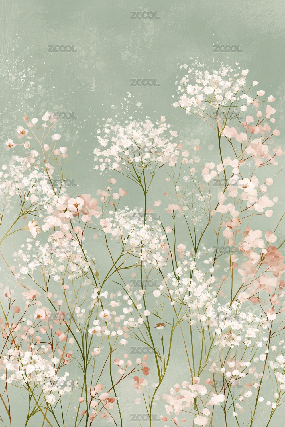 花朵,花瓣,花苞,水滴,插画,柔和,淡雅,自然,花卉,清新