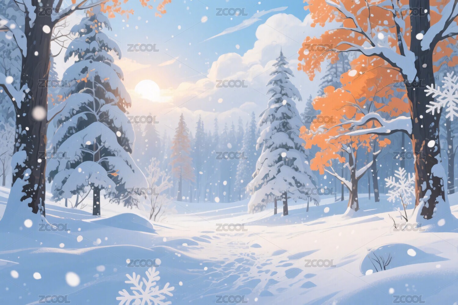冬日雪景插画
