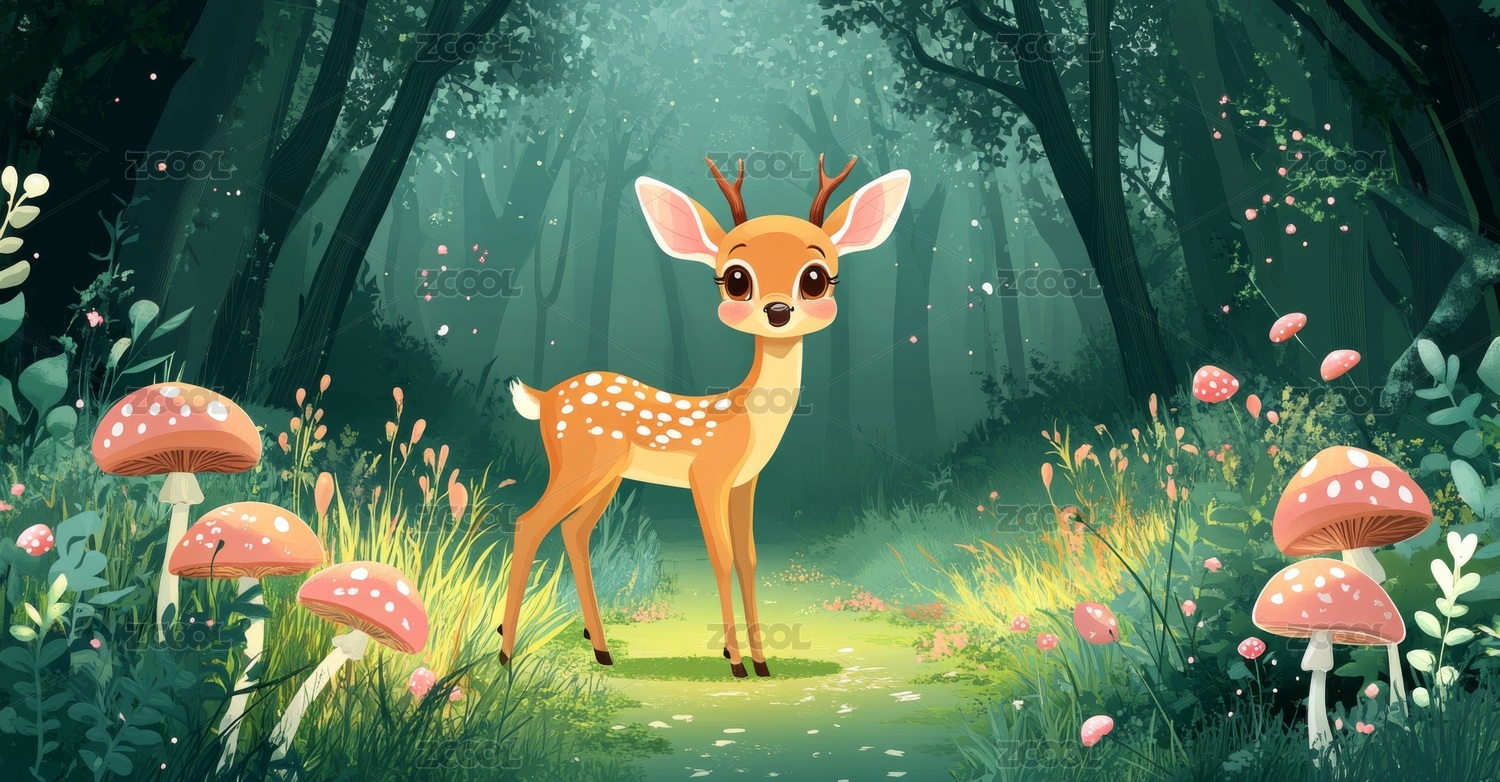 森林中的小鹿插画