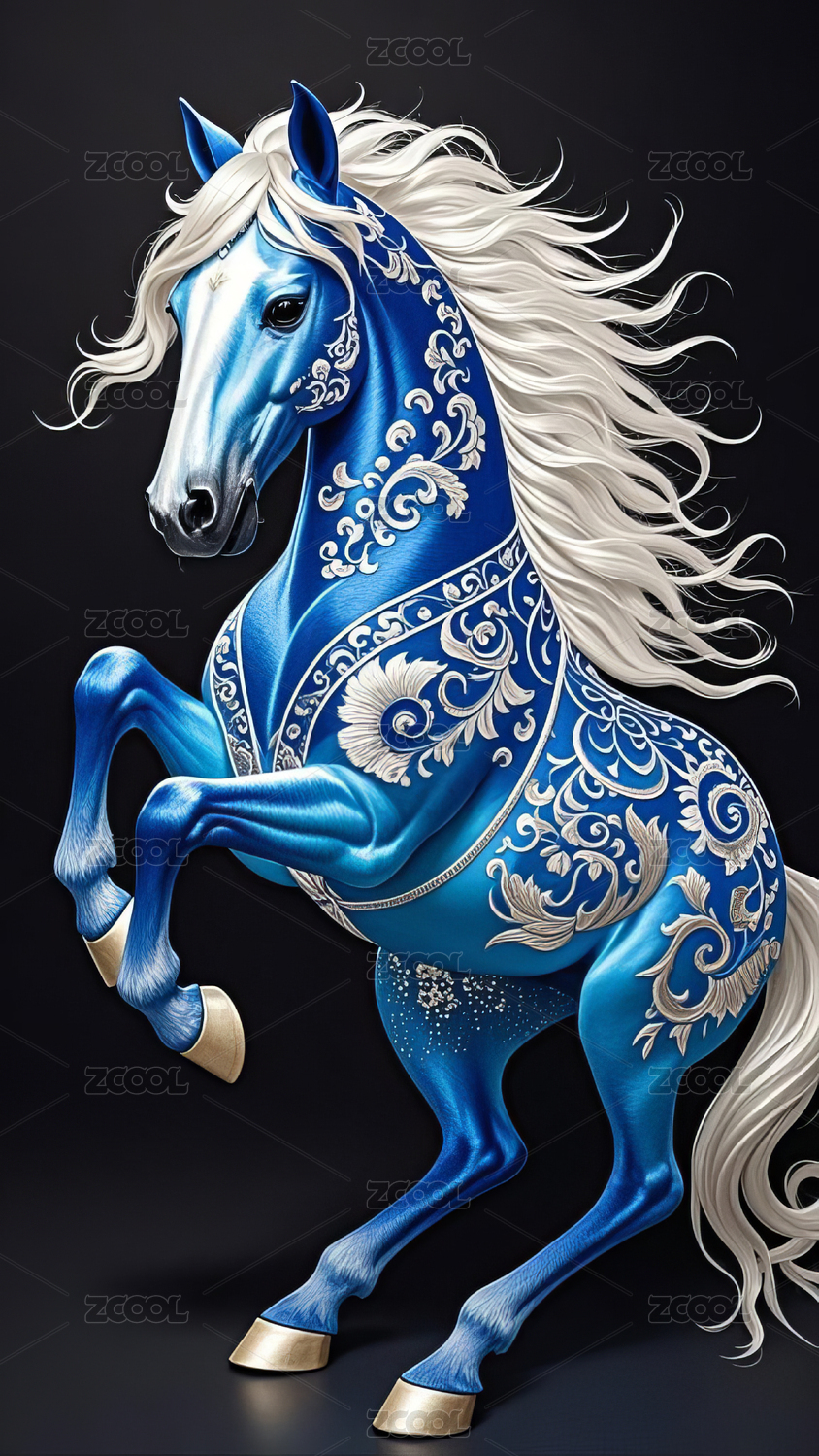 蓝色马花绘动感图