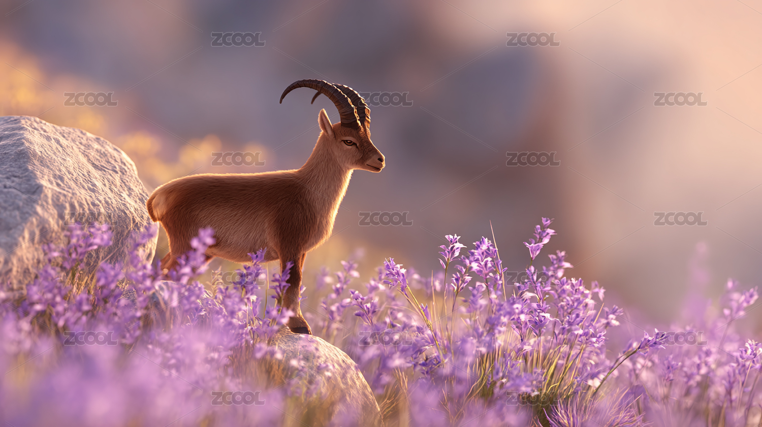 阳光下的山羊与薰衣草