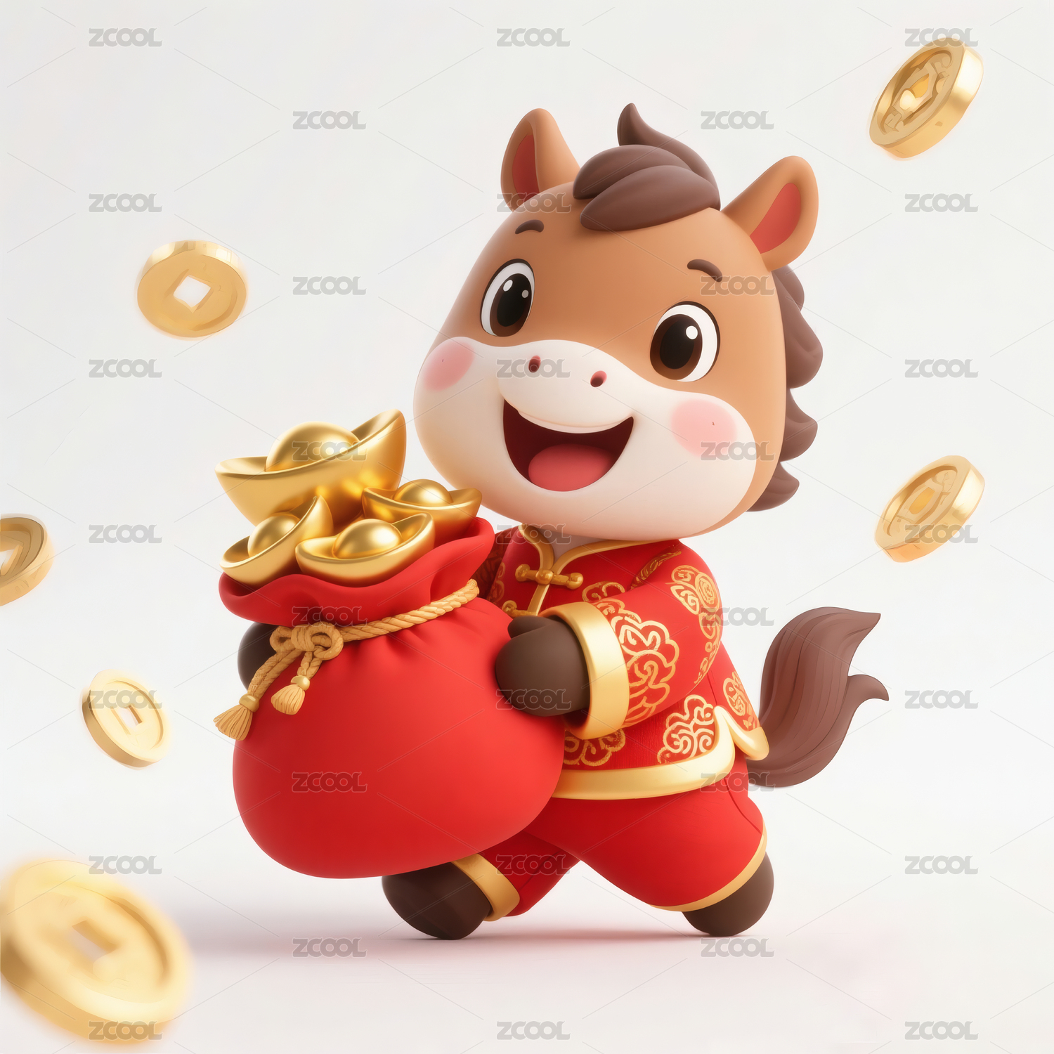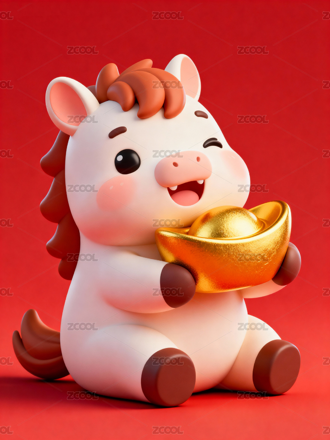 可爱的马抱着红色礼盒喜庆新年节日三维