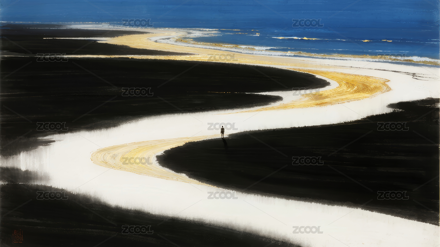 宁静, 自然, 风景, 蓝色, 天空, 美丽, 艺术, 光影, 绘画, 沙滩