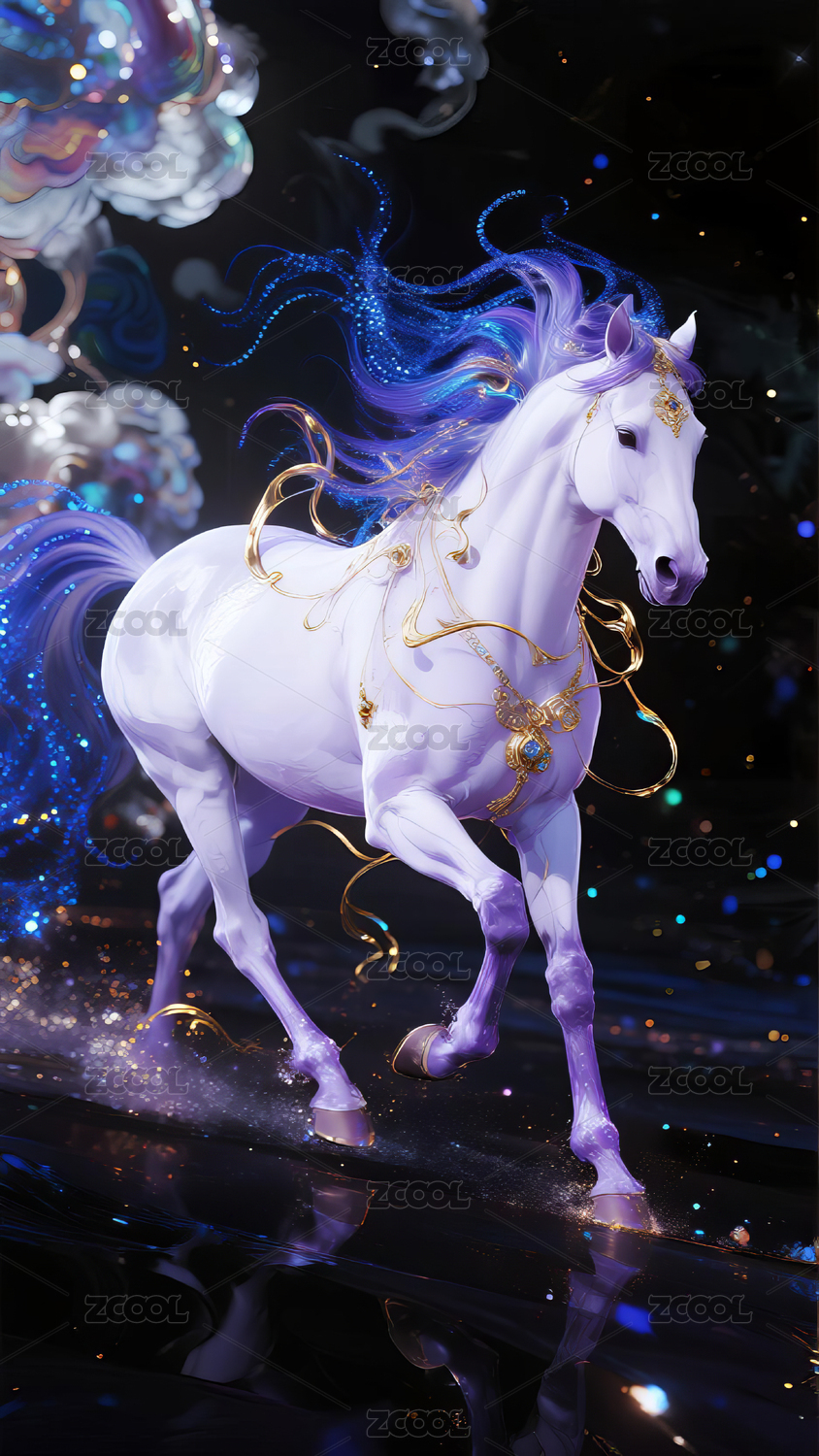 蓝色梦幻宇宙星空光效蓝色马形象