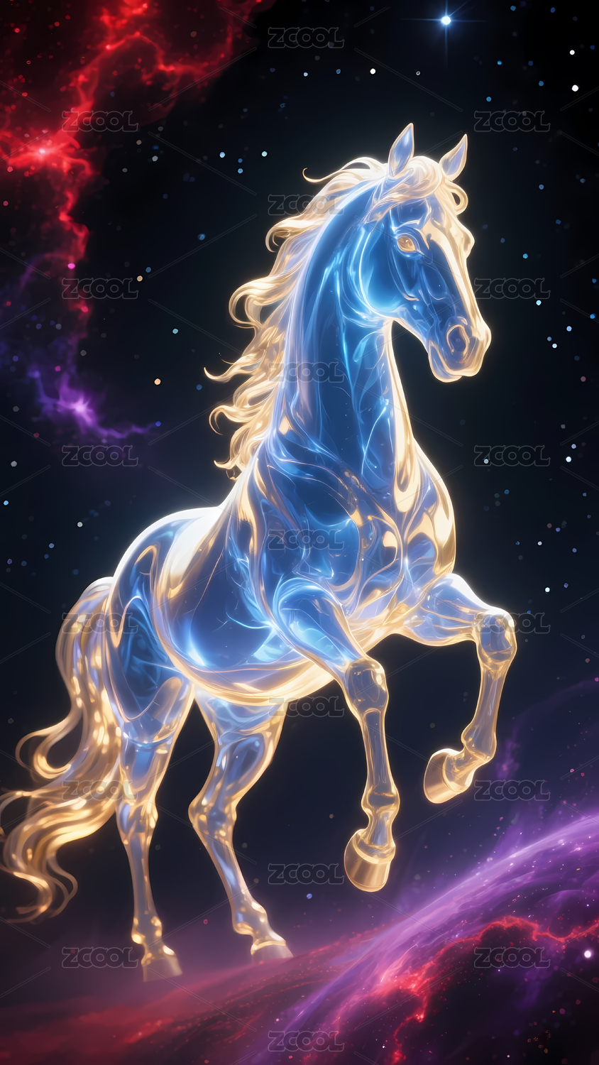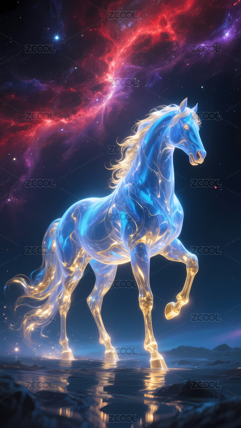 梦幻星空下的炫彩奔马