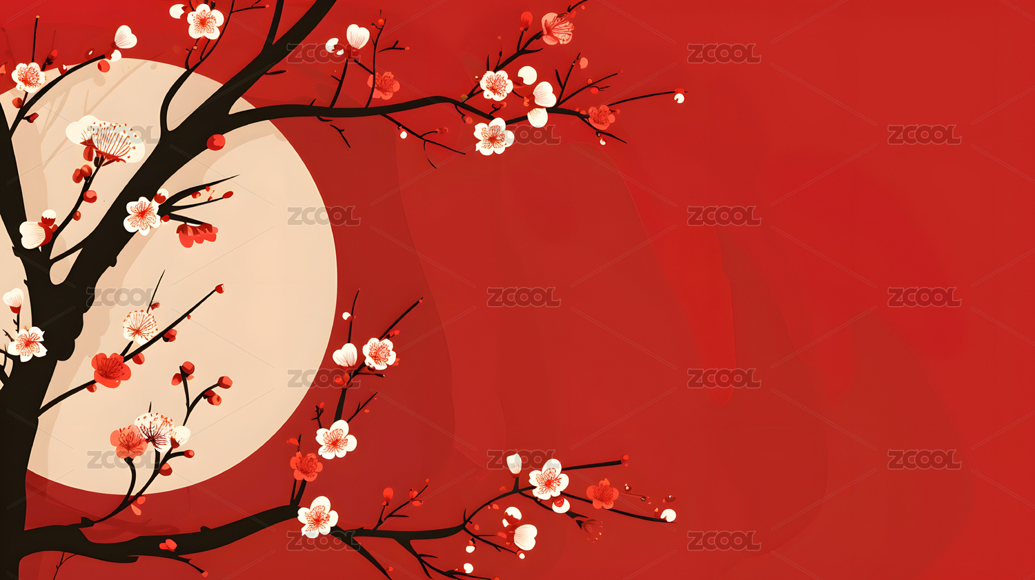 花鸟,圆月,黄色,古风,梅花,燕子,意境,水墨,艺术,传统