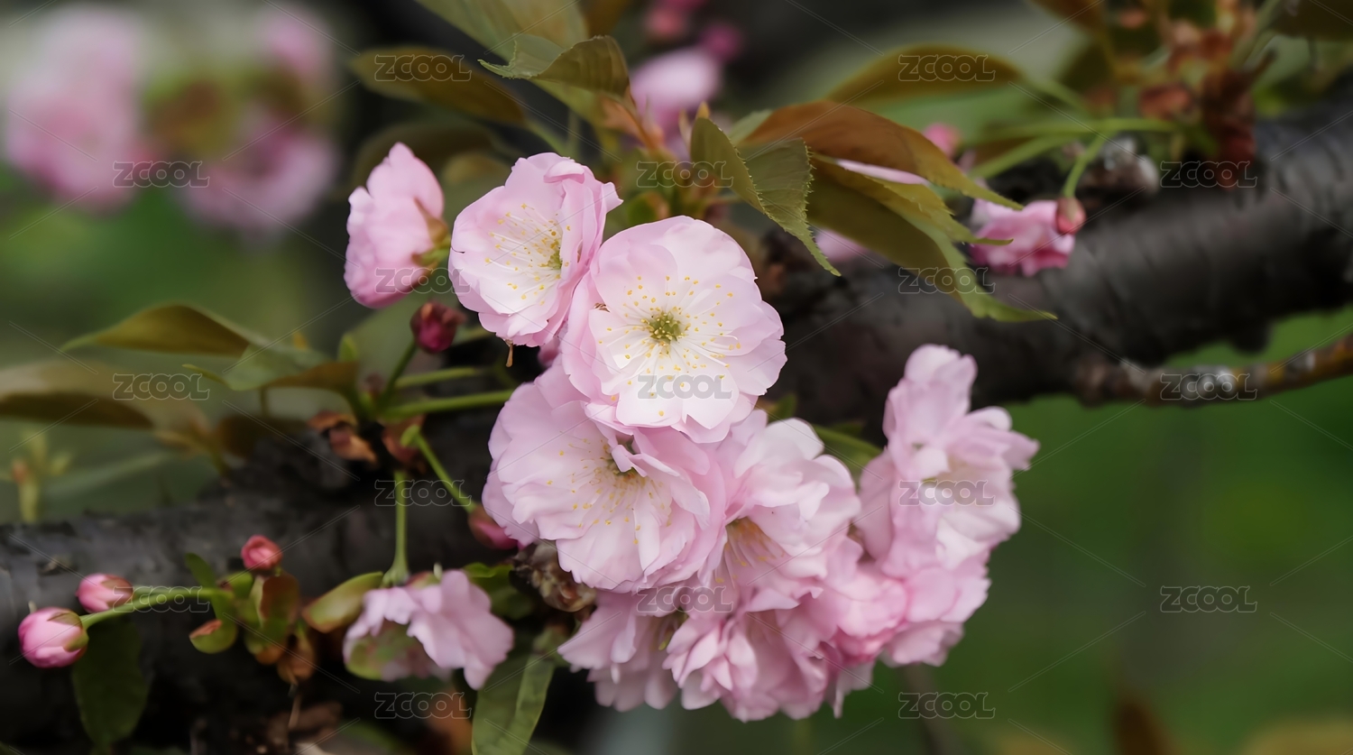 春天 ,公园里盛开的迎春花 樱花 桃花等