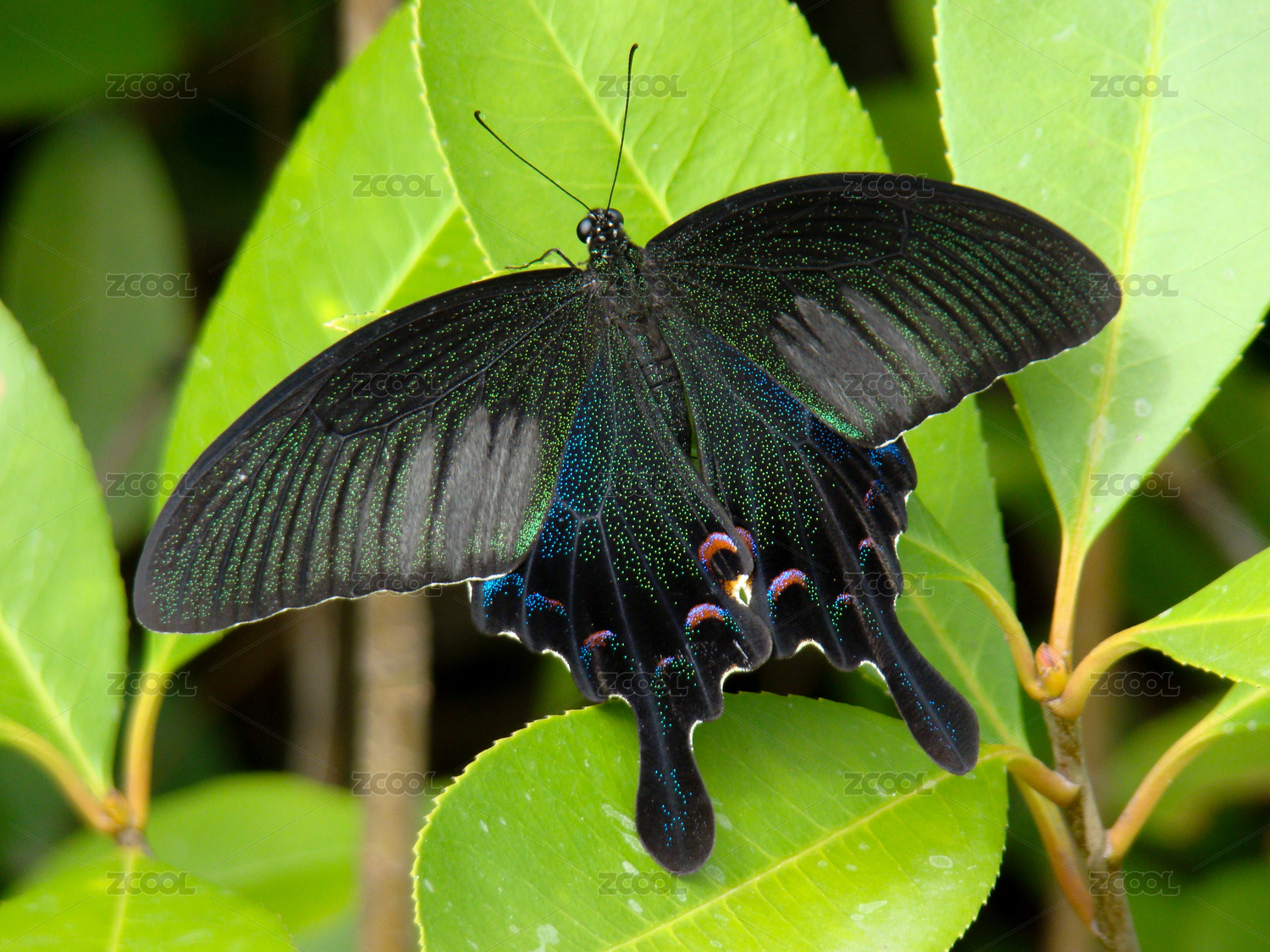 树叶上的一只碧凤蝶