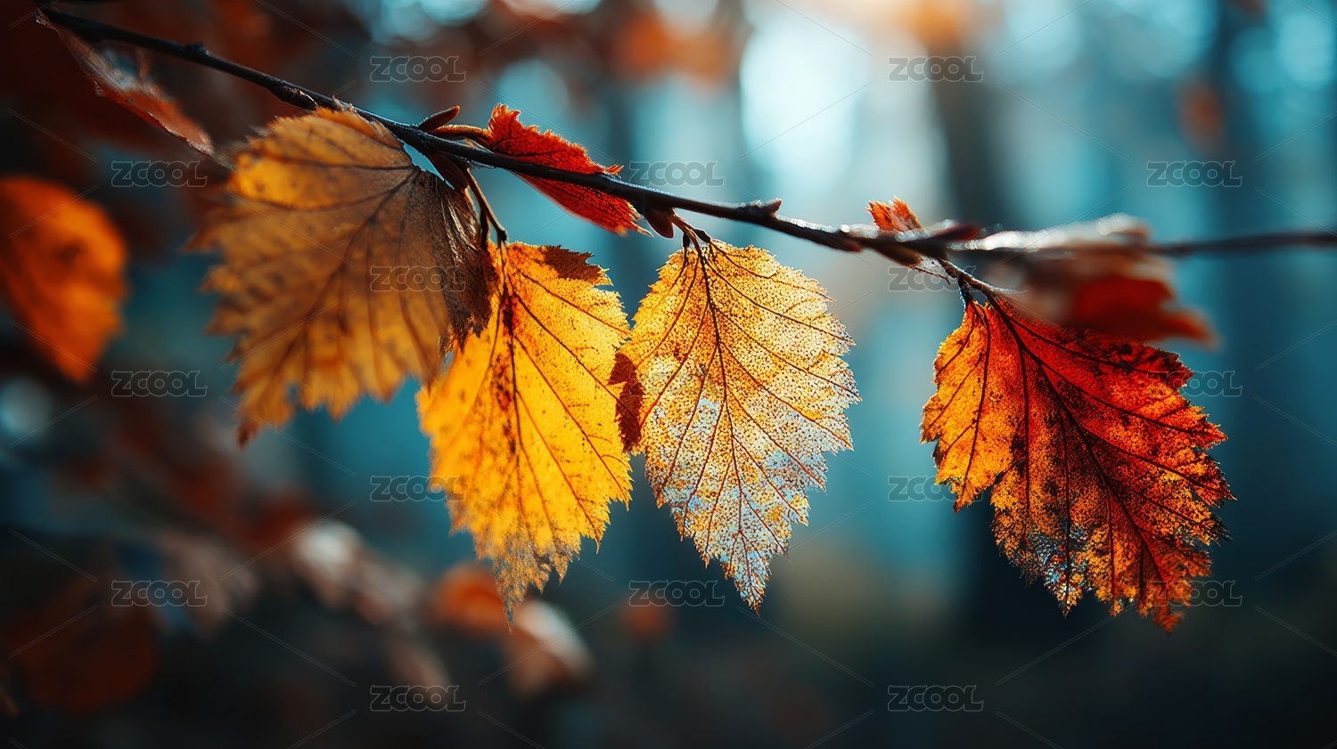 叶子,枝条,红色,植物,自然,背景,水滴,秋天,黄色,叶脉