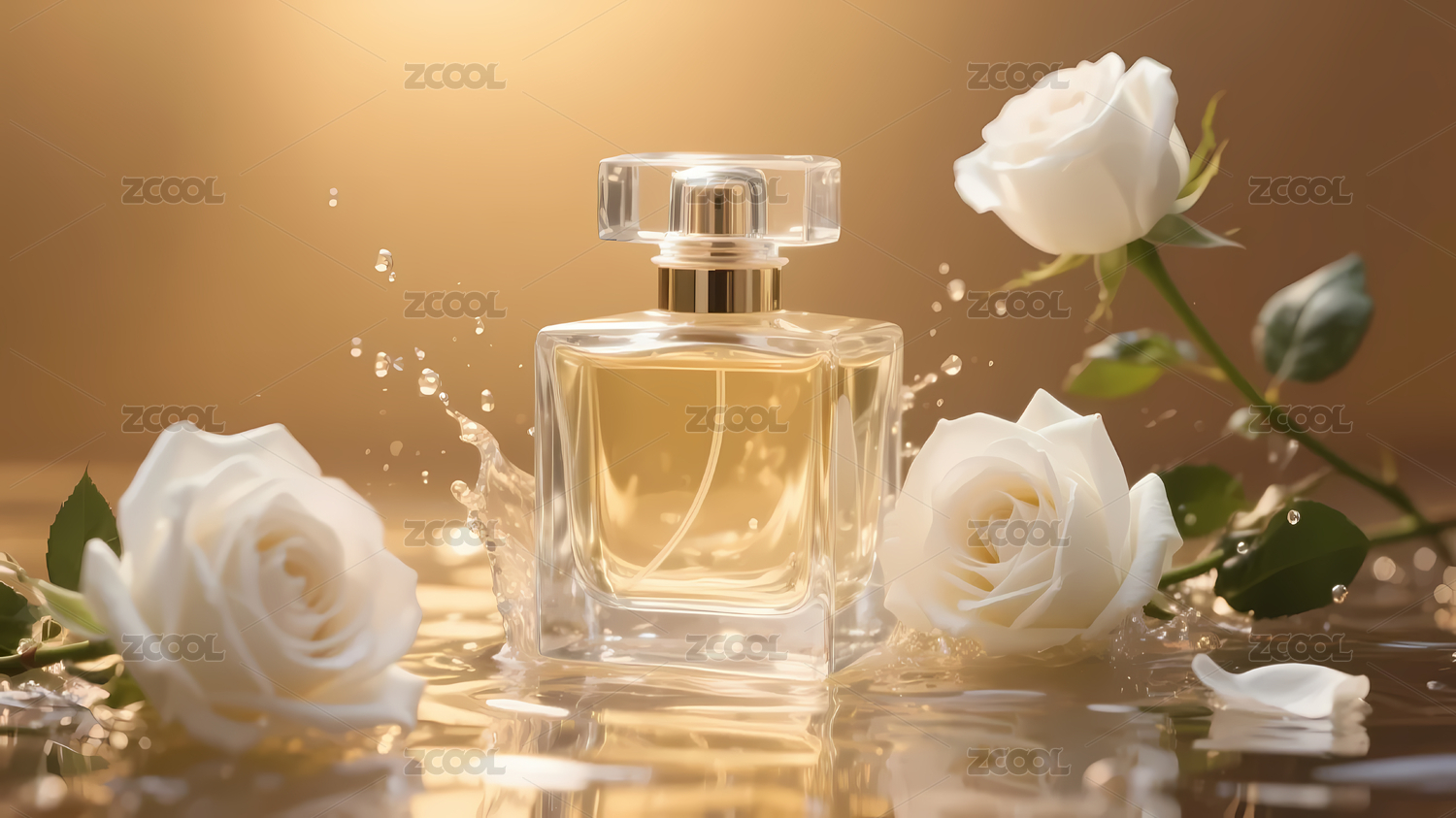 金色,光晕,背景,装饰,香水,玫瑰,瓶子,花,优雅,奢华