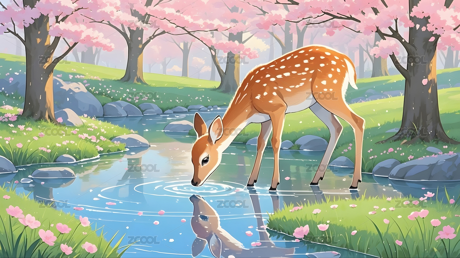 场景,姿态,可爱,动物,户外,自然,生态,樱花林,春季,浪漫