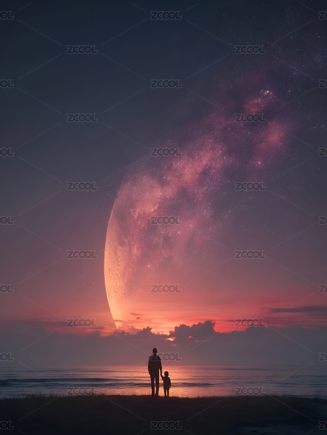 月亮,夜空,夜晚,天空,剪影,雾气,星空,波浪,星星,海洋