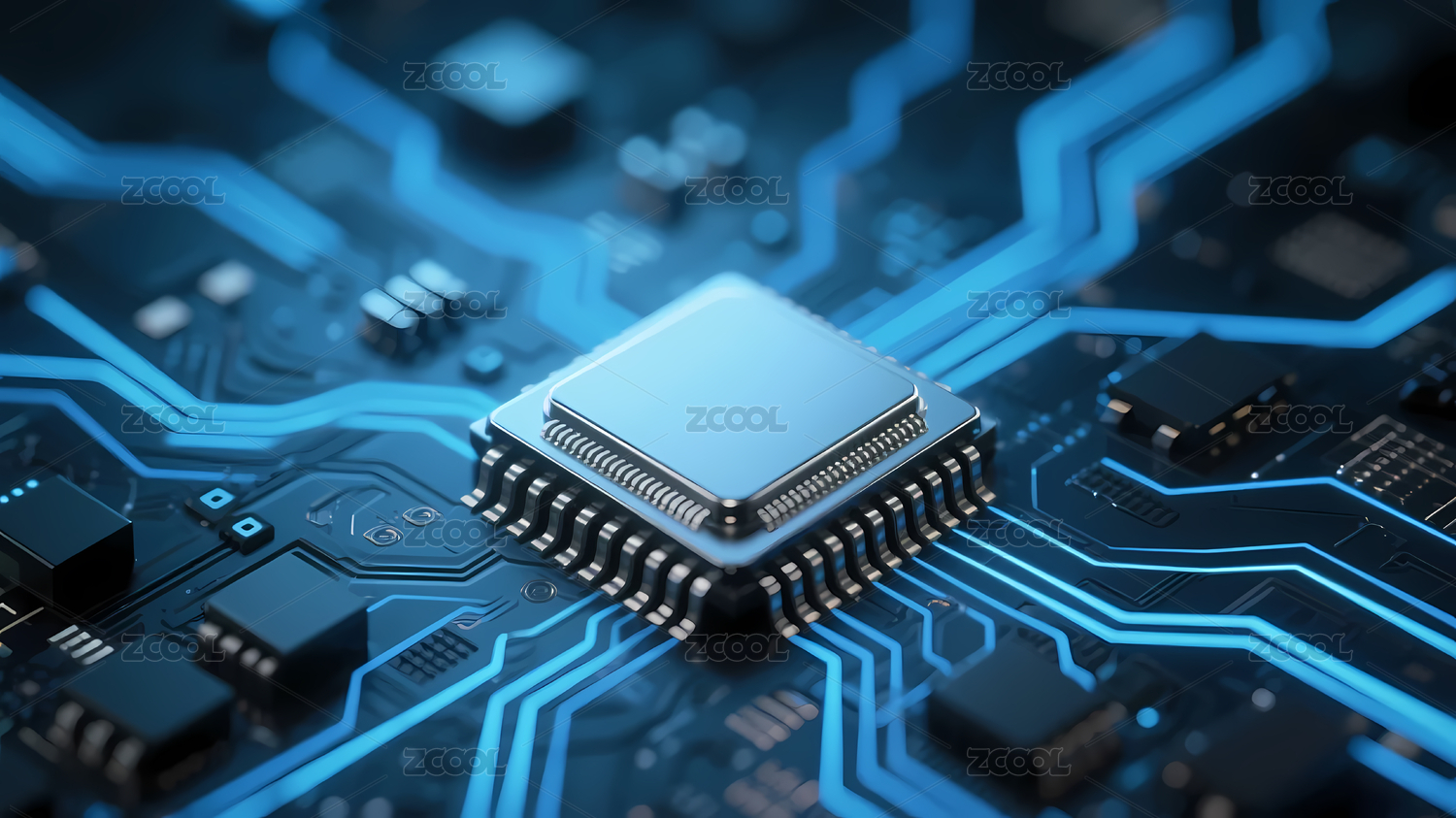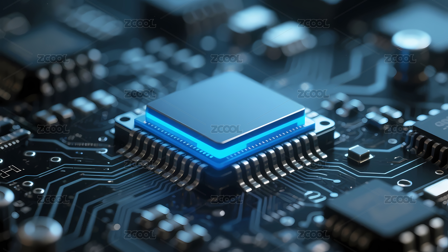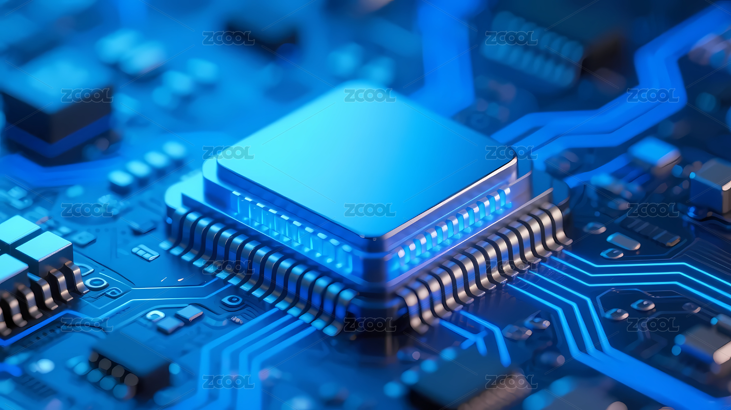 蓝色,深蓝,发光,科技,芯片,精密,电路板,电子,元件,工业